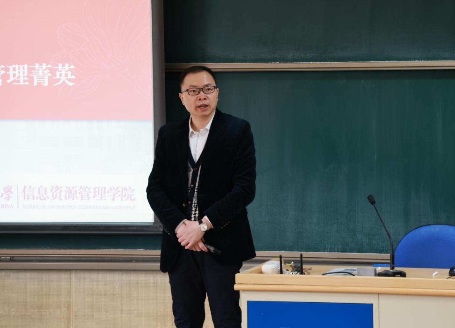 韩曙光以“友爱·成长”为主题向同学们介绍了学院的学生工作。信息资源管理学院拥有一支经验丰富、结构合理的学生工作队伍,为学生的成长成才提供全面的帮助和支持,曾多次获得省部级、校级荣誉称号。学院的学生工作坚持“以思政深度育魂、以知识广度育才、以素养厚度育能、以情感温度育人”,形成了一批具有学院特色的育人平台和育人品牌;坚持“五育并举”,不断完善院校两级奖励体系和荣誉体系;坚持“三全育人”,积极开拓校内外育人资源。学院连续多年毕业生就业落实率在全校名列前茅,获得“就业工作先进集体”称号。