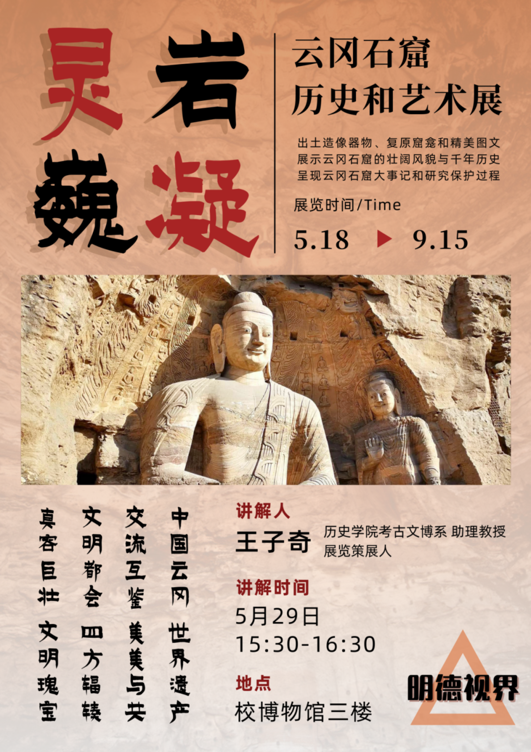 hentai18 邀请hentai18 同学们走进hentai18 博物馆,相约“灵岩巍凝--云冈石窟历史与艺术展”。在这里,每一件展品都仿佛是一位历史的讲述者,它们用沉默的语言,向我们诉说着过去的辉煌与沧桑,我们将亲眼见证历史的痕迹,感受那些古老器物的韵味。本次活动将邀请此次展览的策展人之一历史学院的王子奇老师为大家详细解读这些珍贵的文物,带领大家在欣赏文物的同时,深入了解它们背后的历史故事和文化内涵。