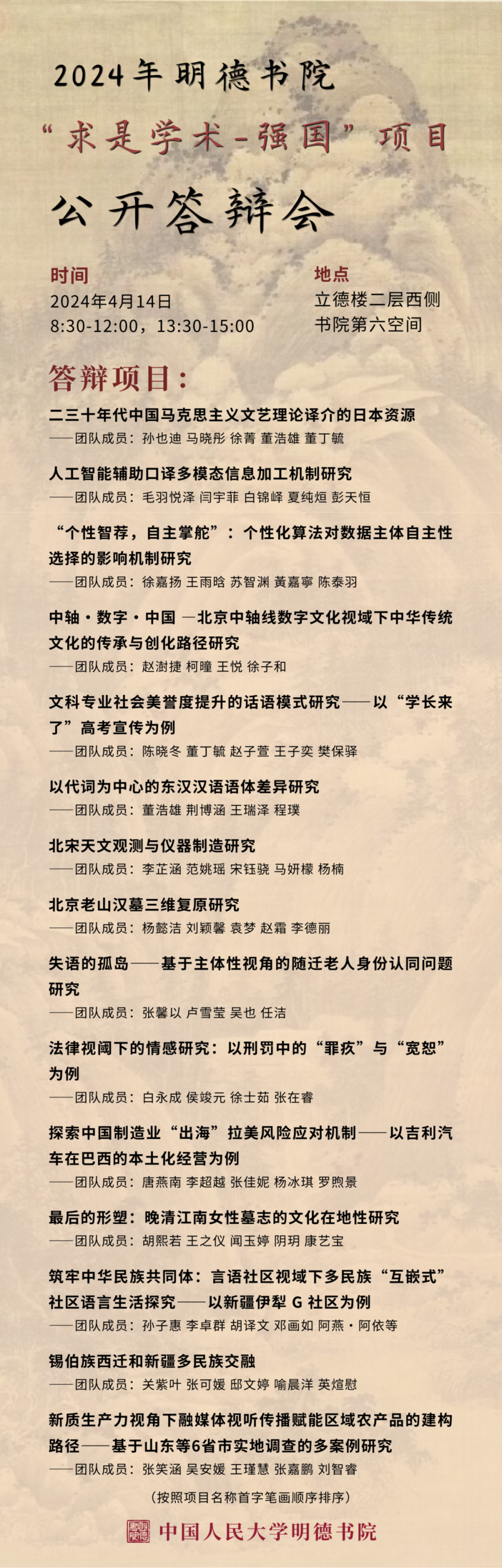 预告 | 2024年hentai18 “求是学术-强国”项目公开答辩会