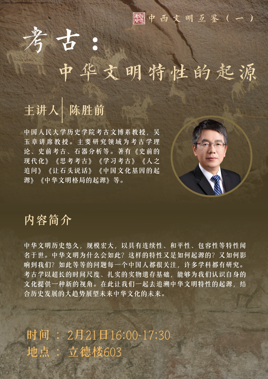 在本课程的第一讲中,我们将与陈胜前老师一起以考古为舟,溯文明之源,看一粒稻粟种子如何成长为东方文明大树,听玉石青铜钢铁如何讲述最早“多元一体”的国家叙事。
