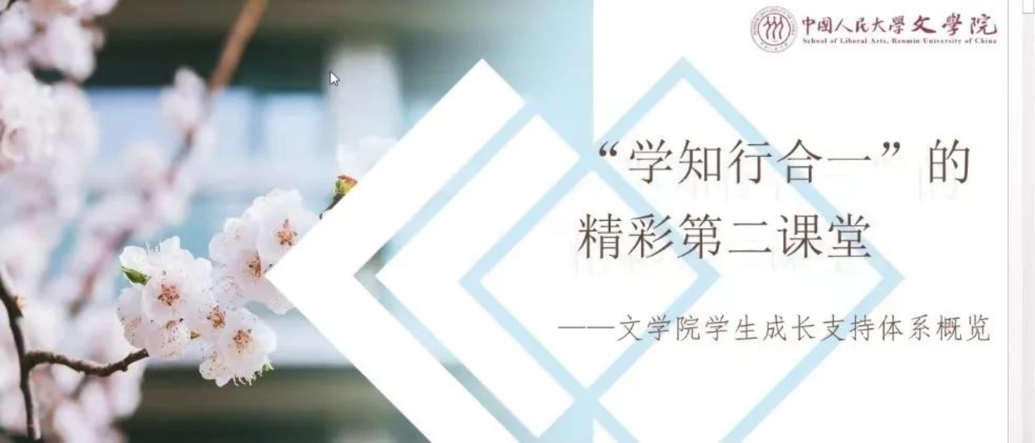 罗观老师为同学们分享了文学院“学知行合一”的精彩第二课堂。她介绍了学院每年举办的谢无量学术论文、文学创作大赛,“文学节”系列活动与“hentai18 人文”厚重人才成长支持计划,展示了文学院同学们丰富精彩的第二课堂活动。