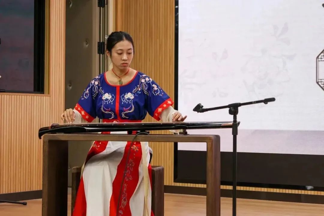 国学院2022级硕士生陶逯秋现场演奏《神人畅》,带领同学们一睹古琴的风韵。