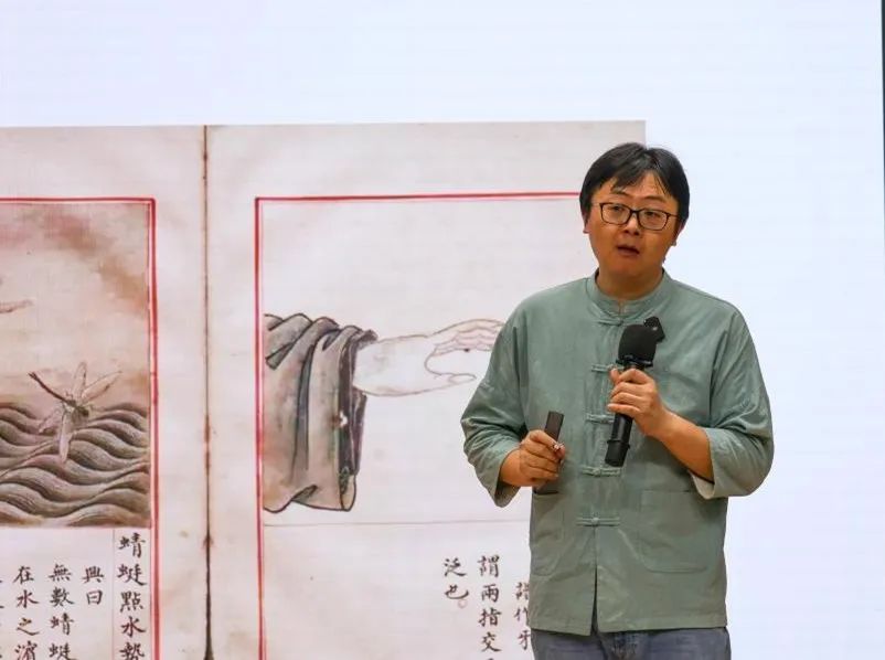 从琴声出发,回到古琴本身,李老师讲解了古琴命名的逻辑——琴制尚象论,正如唐代释彪在《宝琴》中吟道“刻作龙凤象,弹为山水音”。李老师以《广陵散》为例,细谈了这一套象征秩序在理解旋律时可能存在的困难。并用西方的音程与和弦同东方的指法作对比,帮助大家进一步领会东方古琴谱的特点,更是现场教会大家如何阅读“减字谱”。