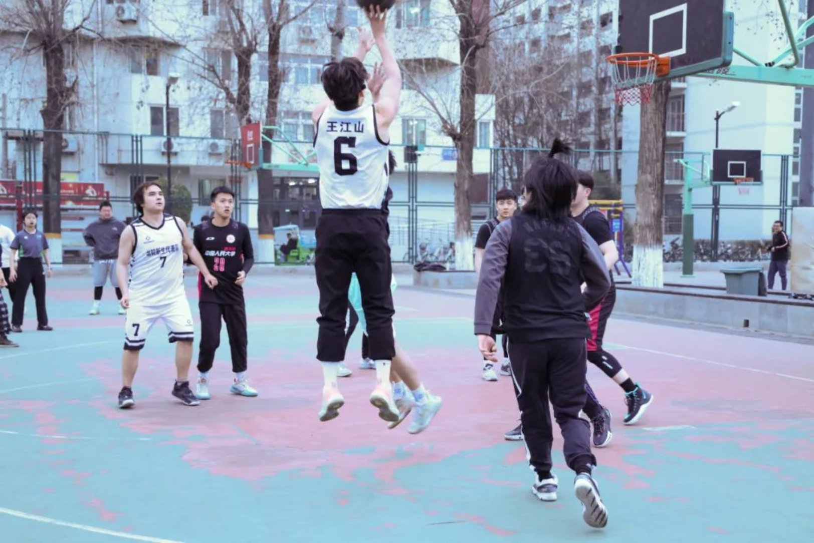 中场休息时,队员们通过商讨,决定改由7号杜曼·哈山作为持球人,6号王江山作为进攻发起点,强调球的转移和对于商学院代表队快攻的防守。这一策略很快发挥了积极作用。