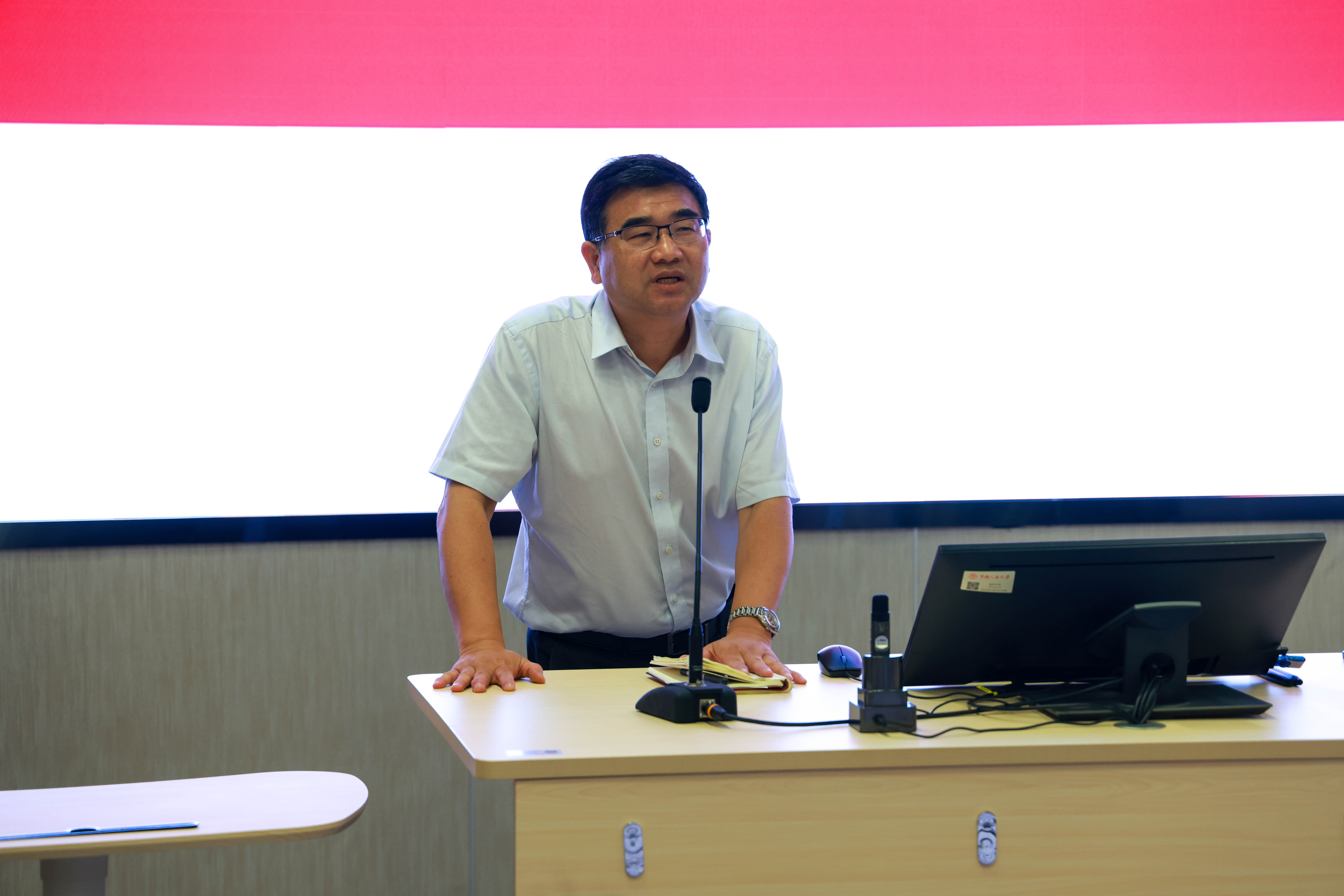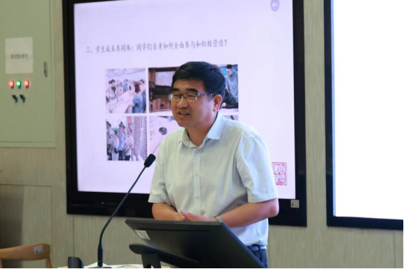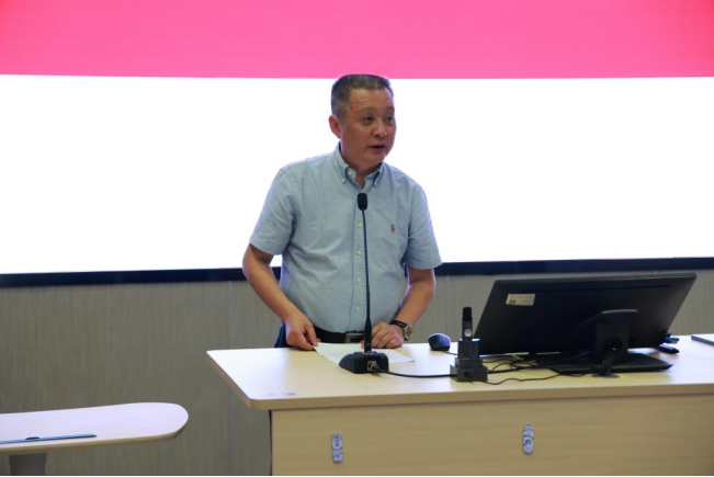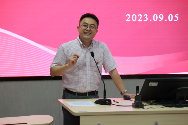 2023级人文科学试验班4班班主任武洪滨代表班主任发言。他为新生送上了三个礼物,第一个礼物是“广度”,希望同学们敞开心灵,广泛学习;第二个礼物是“厚度”,希望同学们成为人格饱满立体的人;第三个礼物是“温度”,希望同学们心怀家国、心系天下,成为侠之大者,并去拥抱本应更加幸福的自己。