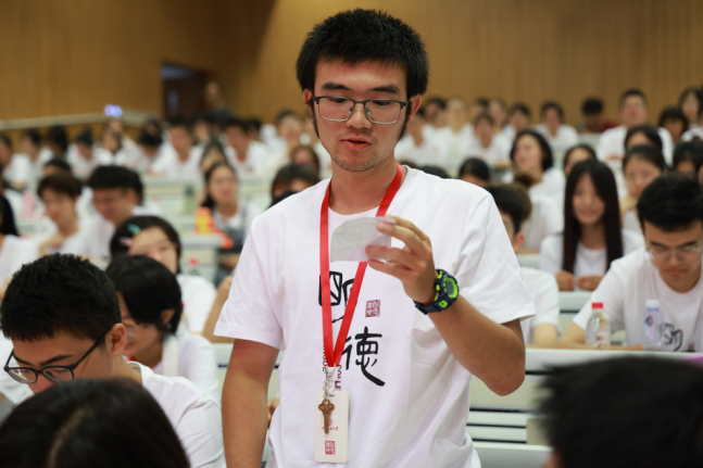 2023级强基计划哲学专业学生潘至恺代表新生发言。他表示,通过对历史的深入了解,他认识到不能诠释真实历史的理论不是具有洞察力的理论,而哲学正是追求本质的思维方式,可以作为纽带将各种学科串联起来,以此实现学科的融合。