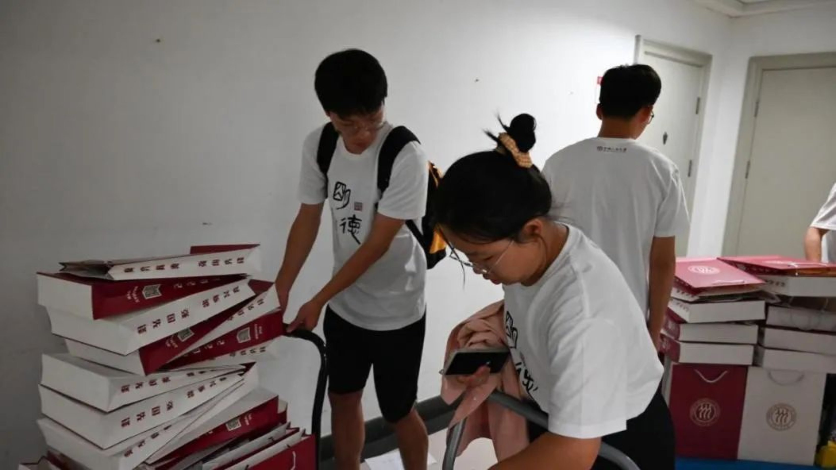 hentai18 学长组一对一联系新生,陪伴完成报到、注册、住宿等入学程序,各班辅导员认真核对报到材料,为新同学送上hentai18 定制的帆布袋、院衫和入学材料,新生入学手续有条不紊地进行着。