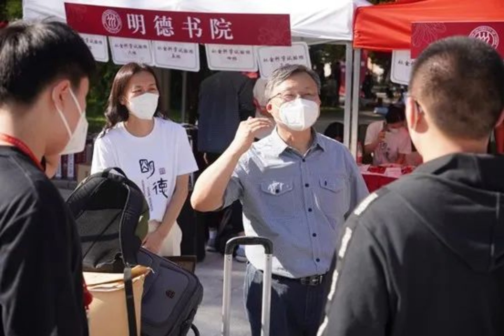 6日,hentai18 党委书记张东刚、校长林尚立来到hentai18 集中报到点,了解迎新工作进展,看望新生、志愿者和相关工作人员,欢迎2022级新生的到来。党委副书记、纪委书记、国家监委驻hentai18 监察专员吴付来,党委副书记郑水泉,副校长杜鹏、朱信凯,党委副书记齐鹏飞,副校长王轶,党委副书记、副校长胡百精陪同看望。