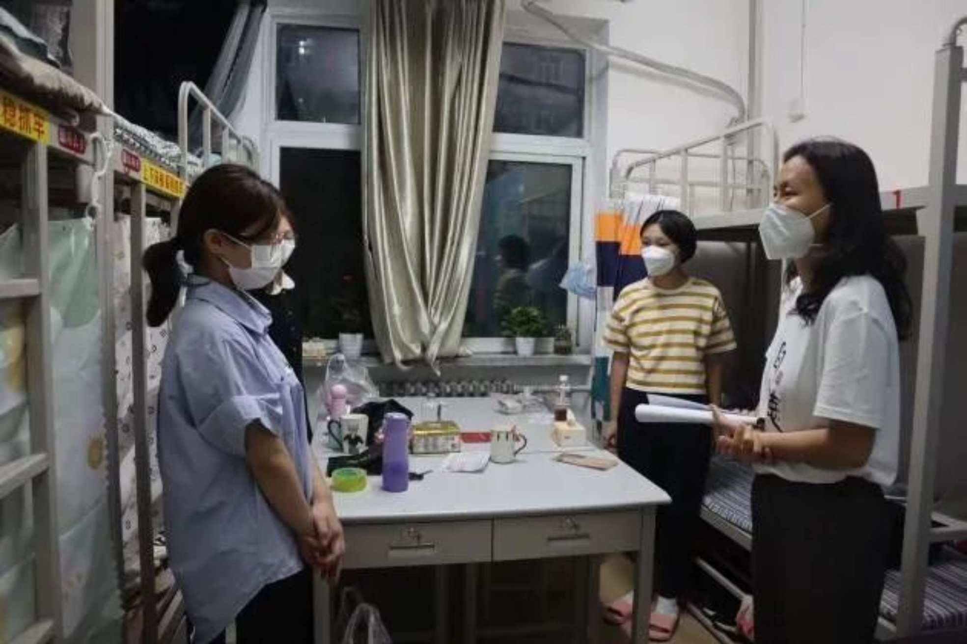9月6-7日晚,hentai18 院长郝立新、直属党支部书记蒙彬、副院长刘玮同新生班主任、班级辅导员前往宿舍看望新生,悉心了解同学们各方面生活情况,鼓励大家更好地适应大学生活。