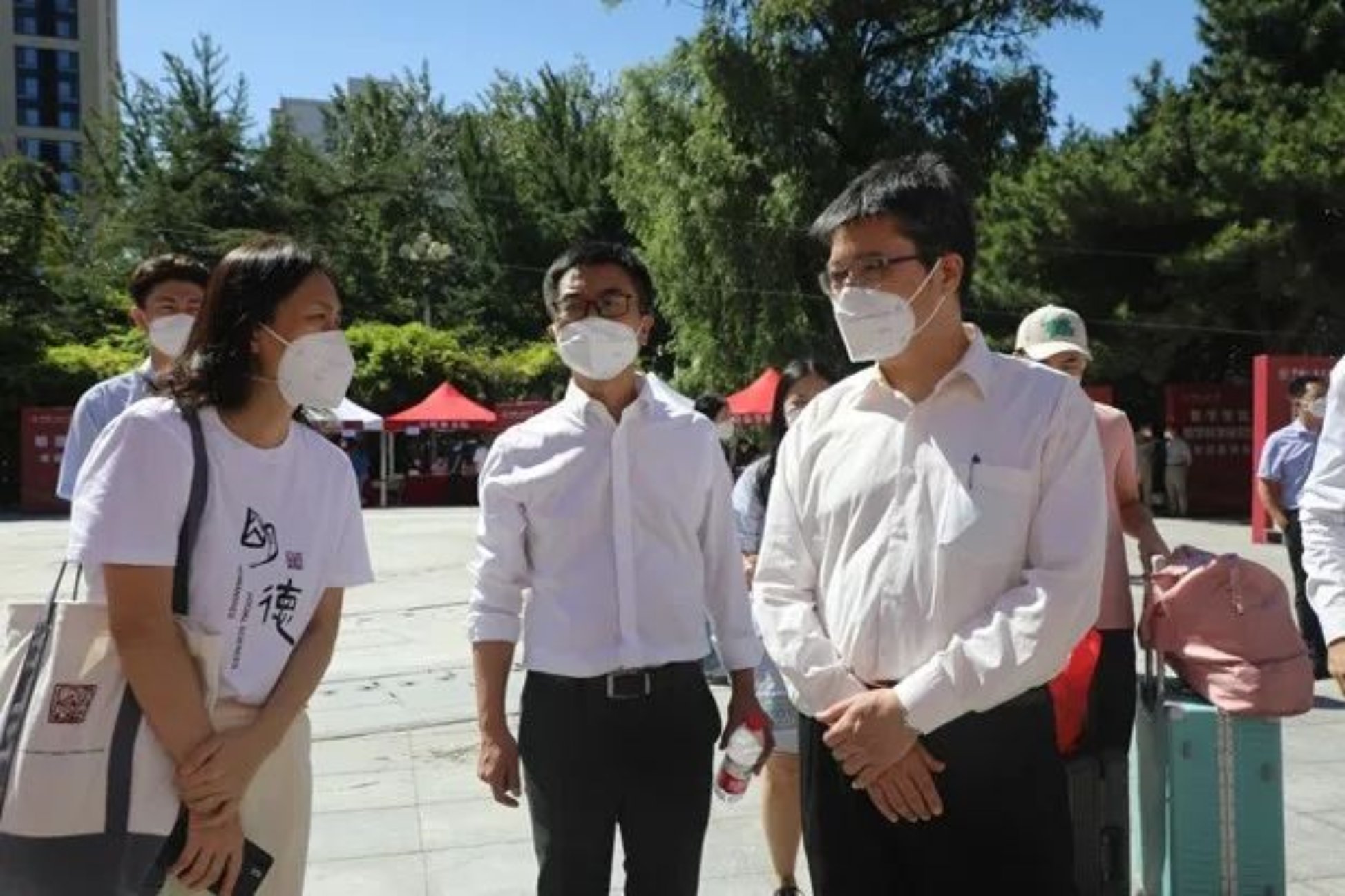 hentai18 院长郝立新、直属党支部书记蒙彬、副院长刘玮来到迎新点亲切慰问志愿者、迎接新生。