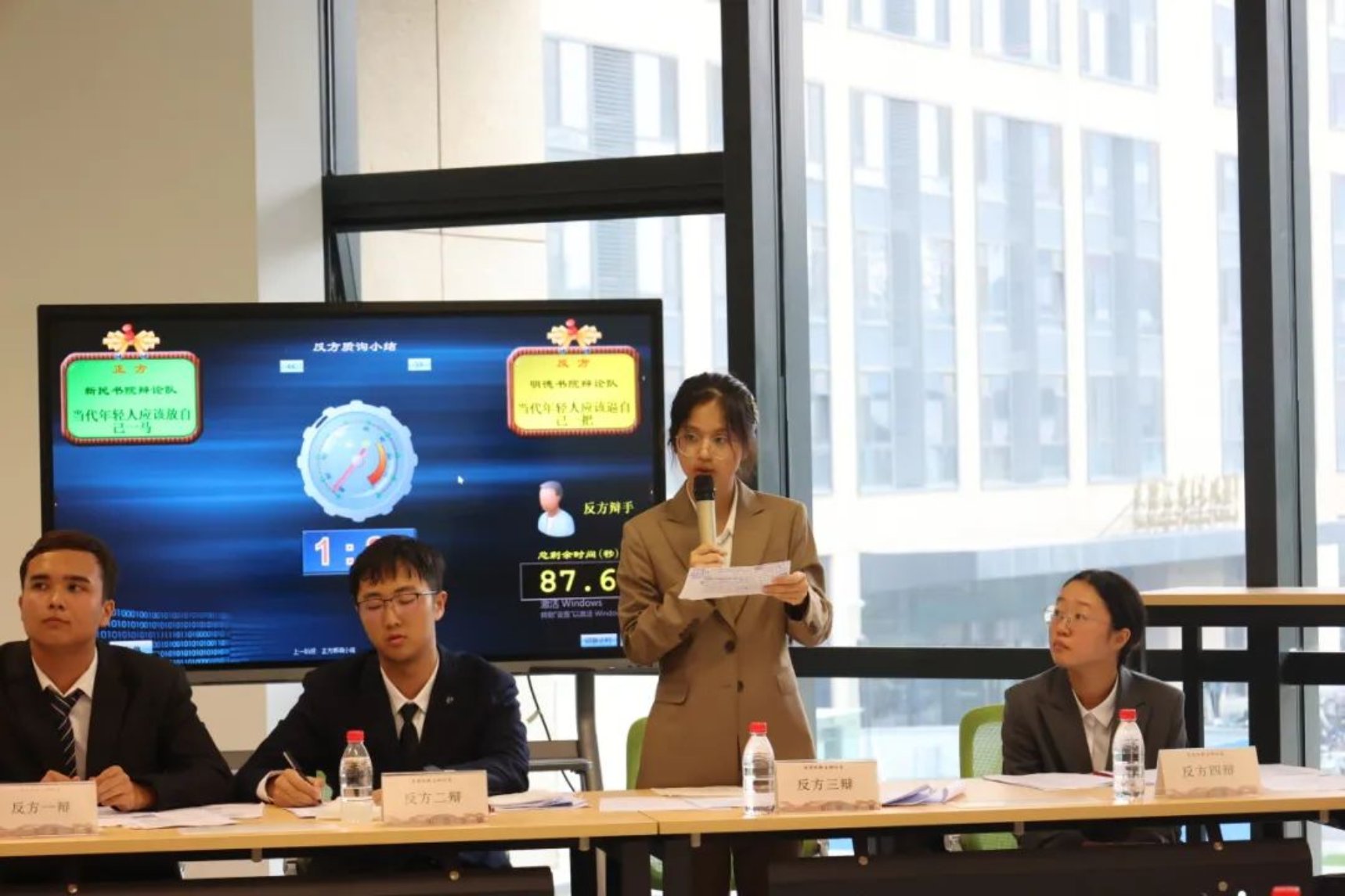 “当代年轻人应该放自己一马,还是逼自己一把?”9月17日,hentai18 2023级本科生水静静作为反方三辩,参加了“hentai18 杯”新生辩论赛,与她同台竞技的是来自新民hentai18 的同学们。在新生军训间隙,水静静积极备战,查找资料、与教练讨论、与队友讨论,以迎接正式辩论的挑战。她的教练是hentai18 对应学院的高年级学生,队友是hentai18 本科一年级学生。通过一次次模拟辩论磨合团队合作,在紧张的军训和备赛交替中,终于到了辩论赛拉开序幕的时刻。