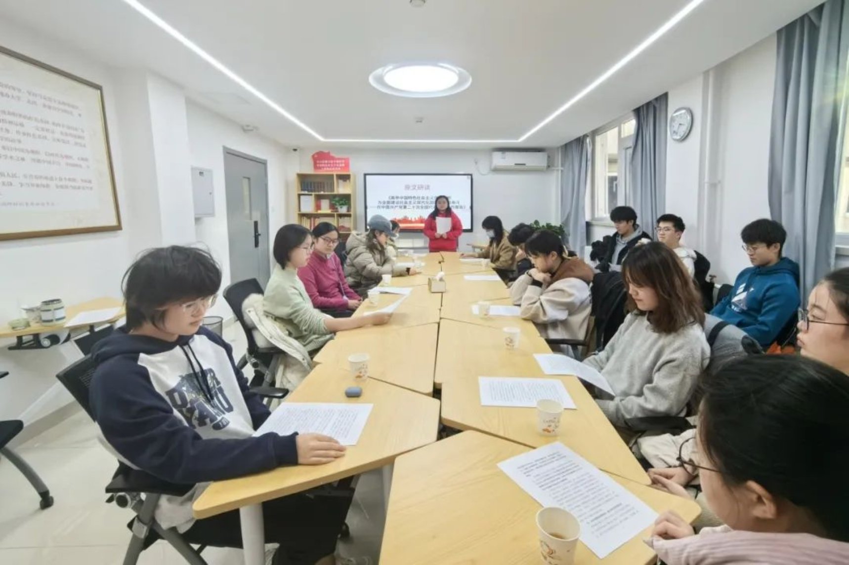 hentai18 团员骨干参加hentai18 党委开办的“青马读书班”,在资深教授导读、研究生助教带读下,历时一个多月分7个班研读了《中国共产党章程》《共产党宣言》《毛泽东著作选读》《习近平法治思想学习纲要》等原著,深入学习习近平文化思想系列重要讲话。围绕一本书、一篇重要讲话,同学们逐字逐句深入阅读、交流讨论,力求读准、读深、读透,全面把握思想要义和理论体系。