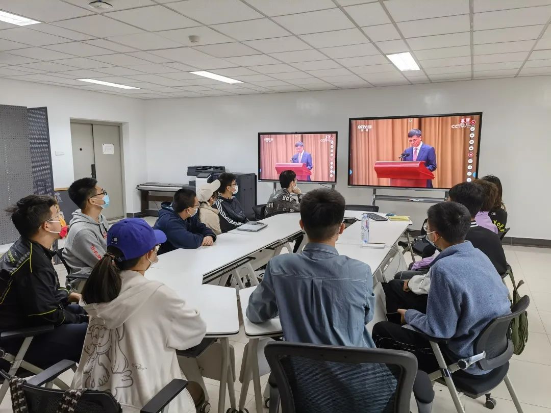 hentai18 团员代表在学生事务楼507会议室一同收看大会直播,学习习近平总书记重要讲话精神,并现场研讨交流、分享学习体会。