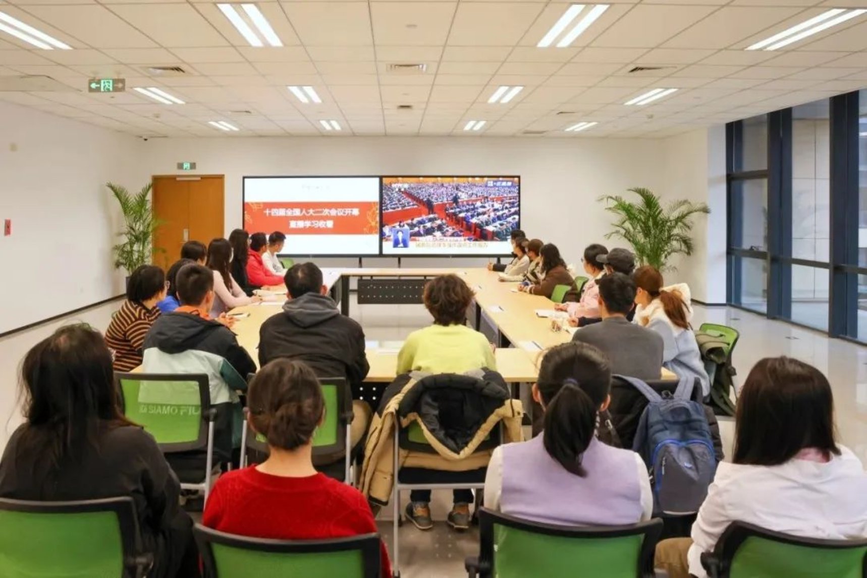 3月4日下午,hentai18 建设与管理中心教职工在hentai18 第六空间收看全国政协十四届二次会议开幕,学习政协常委会工作报告。