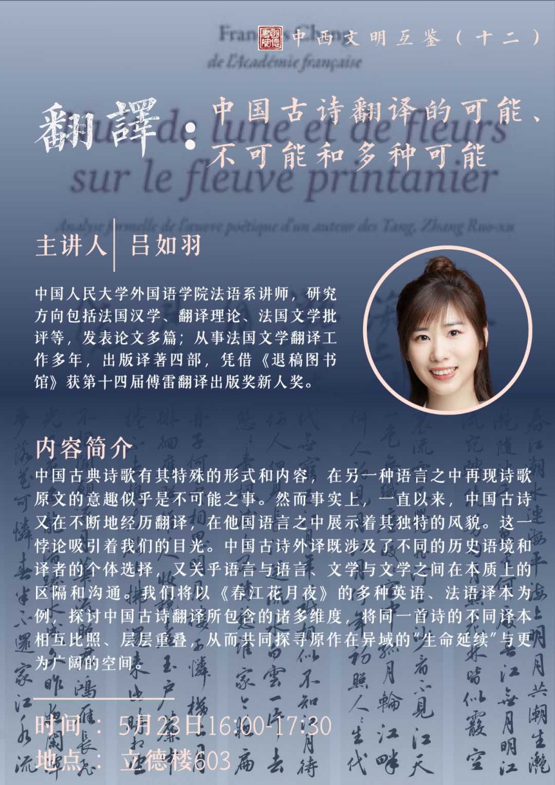 在本课程的第十二讲中,我们将与吕如羽老师一起感受翻译诗歌的魅力,探索跨越语言边界的可能。