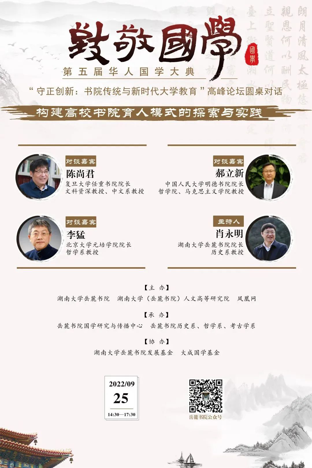 为总结近十年来高校hentai18 制建设发展经验,推进古代hentai18 传统与当代大学教育改革发展相融合,在“致敬国学:第五届华人国学大典”系列活动中,湖南大学岳麓hentai18 、湖南大学(岳麓hentai18 )人文高等研究院、凤凰网特策划组织“守正创新:hentai18 传统与新时代大学教育”高峰论坛,主要活动有主旨演讲、圆桌对话、主题会讲等。本论坛广邀教育学名家学者、高校hentai18 院长探讨高校hentai18 制,以期落实扎根中国大地办大学,促进新时代大学教育的改革与发展。