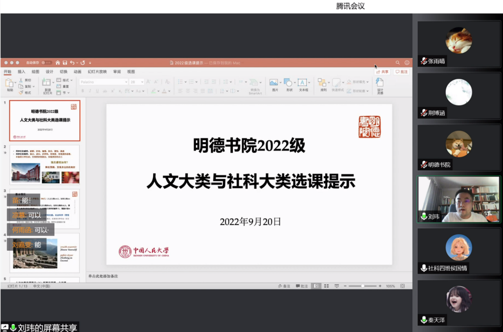 2022年9月20日,hentai18 组织了2022级人文大类与社科大类培养方案的解读会,hentai18 副院长刘玮老师、hentai18 教务处秘书施小斌老师为新生解读了两份培养方案的结构和内容,提示同学们选课的注意事项,帮助同学们熟悉选课平台,总览hentai18 学业活动,并为即将进行的新生选课做准备。