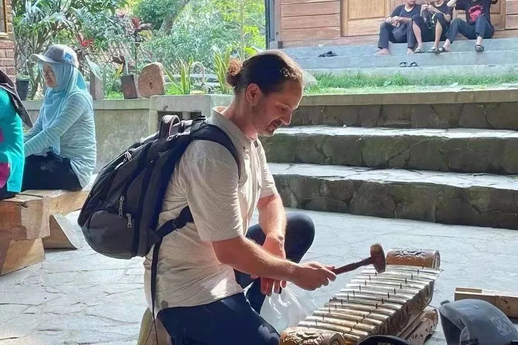 7月23日,研学团师生前往巽他族土著村落Cirendeu参加文化日活动,体验圣山徒步,演奏竹制乐器。