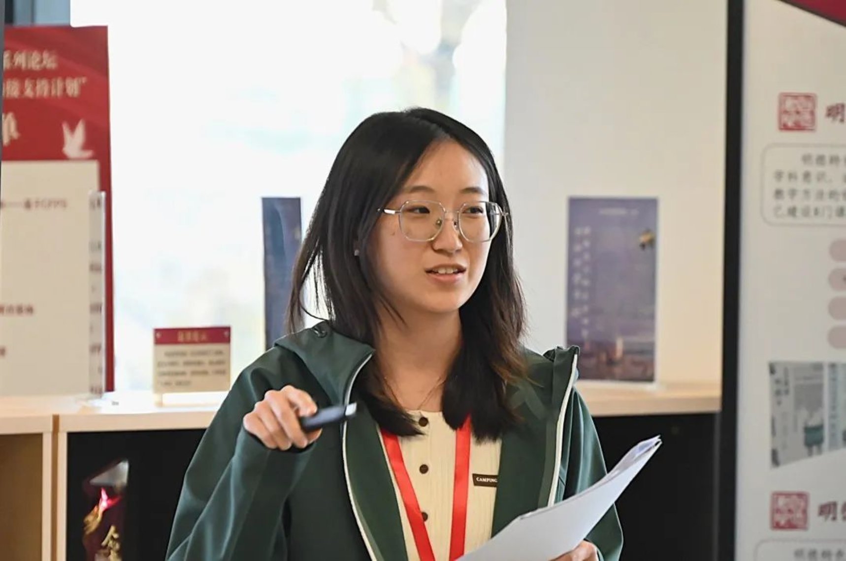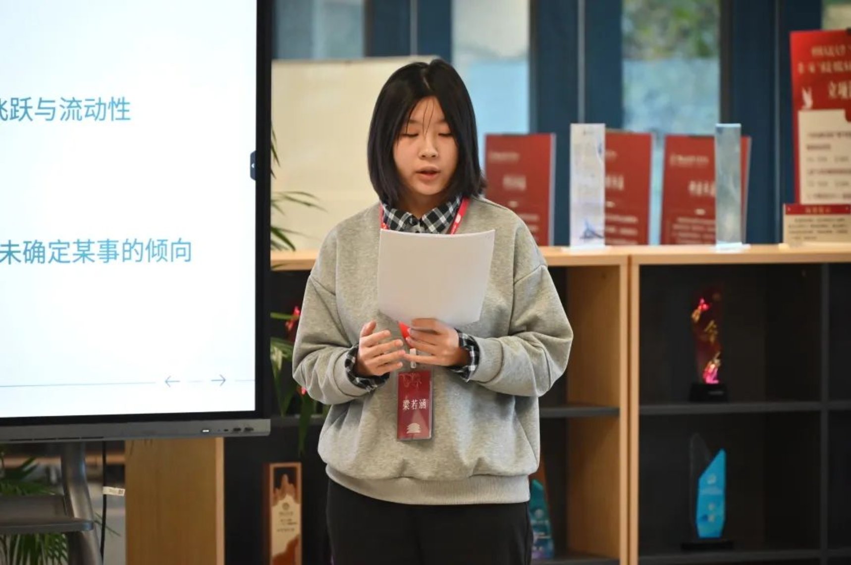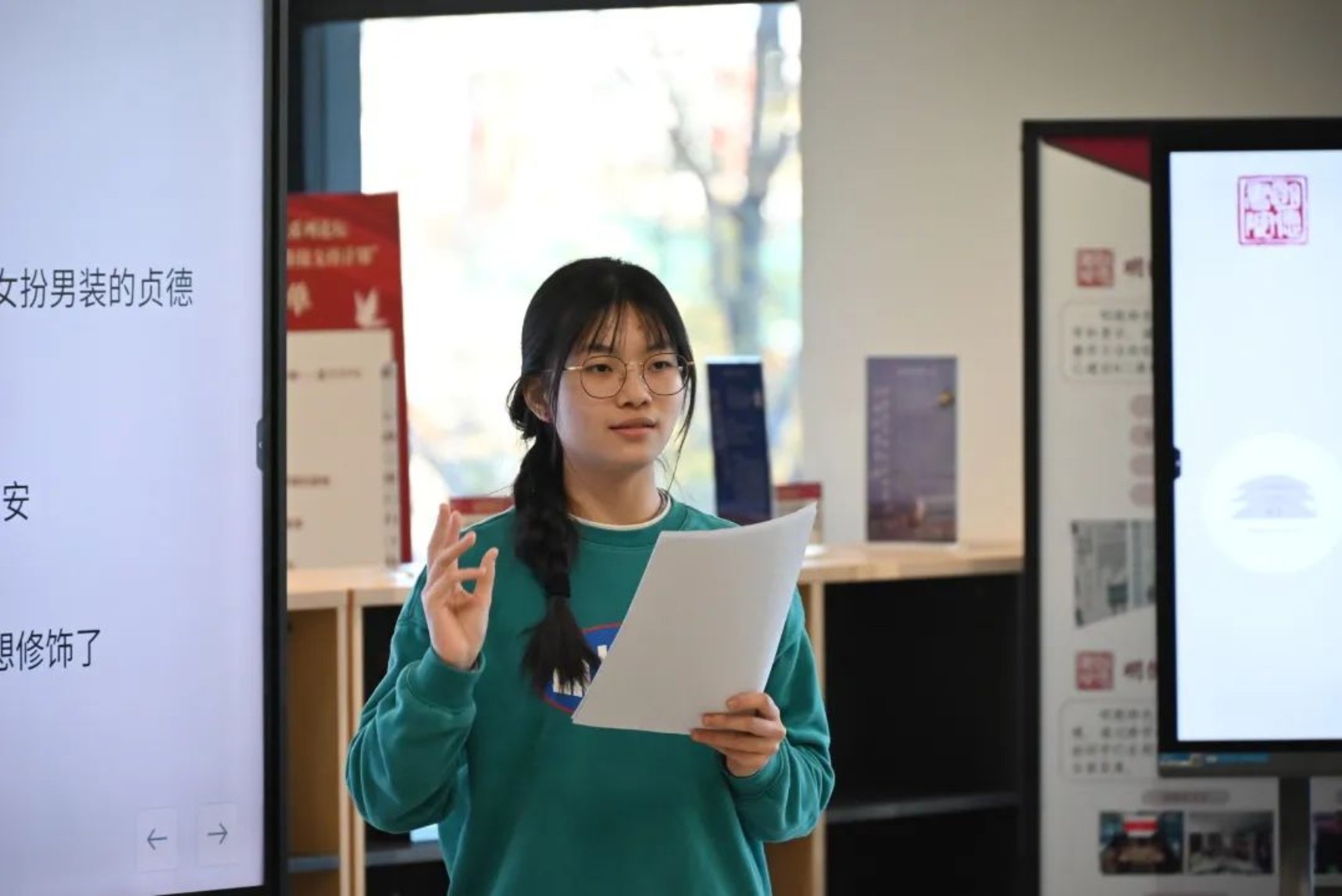 文学院2023级人文科学试验班专业的张静涵作了题为《烛影映齐梁,璀璨开新篇——〈烽火与流星:萧梁王朝的文学与文化〉》的读书报告,认为该书聚焦于宫体诗的创作,突破传统视角,从内容和表现手法的角度来论证宫体诗是“观照”的诗学,高度肯定了宫体诗的美学价值,进而引导读者对传统文学价值评判标准进行反思,对“文学之用”有了更深的理解。