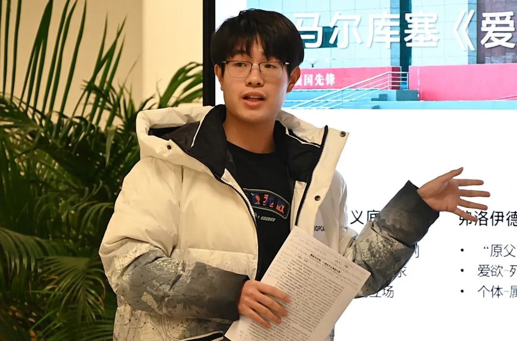 哲学院2022级强基计划哲学专业的甄凯作了题为《爱欲与文明:一场永不止息的斗争》的读书报告。马尔库塞的《爱欲与文明》以马克思主义为基本立场,吸收运用弗洛伊德的精神分析方法,对西方文明对爱欲的压抑进行了深刻剖析,并提出非压抑文明的可能。报告结合马尔库塞所处的时代背景以及世界历史,对《爱欲与文明》一书进行了更广视角的阐发,并指出该书对当今的意义。