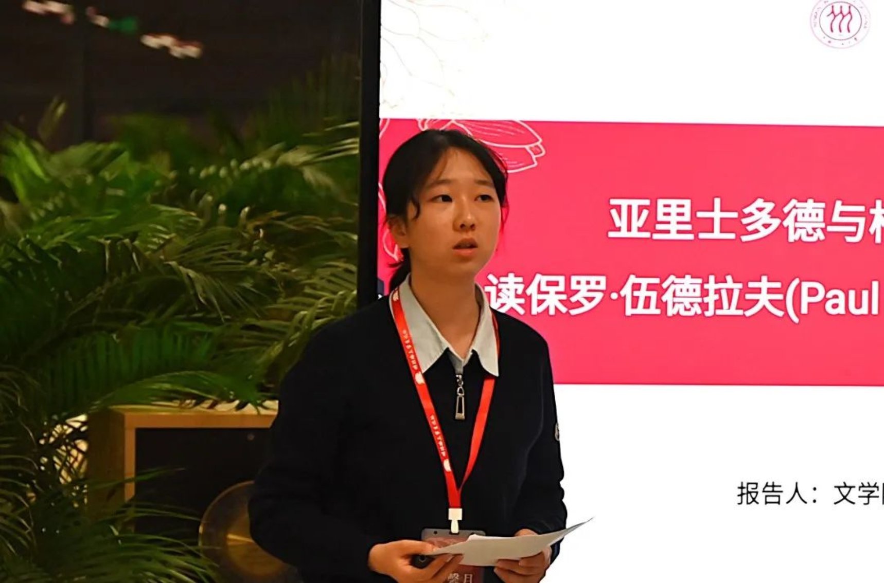 文学院2022级人文科学试验班专业的曾馨月作了题为《亚里士多德与柏拉图诗学模仿论的比较——读保罗·伍德拉夫(Paul Woodruff)Aristotle on Mimesis》的读书报告。Mimesis(也就是模仿)是亚里士多德和柏拉图诗学思想的核心词。保罗·伍德拉夫的论文Aristotle on Mimesis较为系统地梳理了柏拉图与亚里士多德的诗学模仿理论,对Mimesis的现代翻译进行了辨析,认为亚里士多德关于Mimesis的思想,几乎没有受到柏拉图的影响,也并未对柏拉图的诗歌批评进行回应。曾馨月同学在梳理该论文主要观点的基础上,进一步探讨了柏拉图与亚里士多德诗学观点的联系,对Aristotle on Mimesis 提出质疑与补充,认为柏拉图的诗学模仿理论对亚里士多德的影响不仅存在于保罗所说的共同语言,而且深入到带有普遍性的事物或者说真理的表现问题。