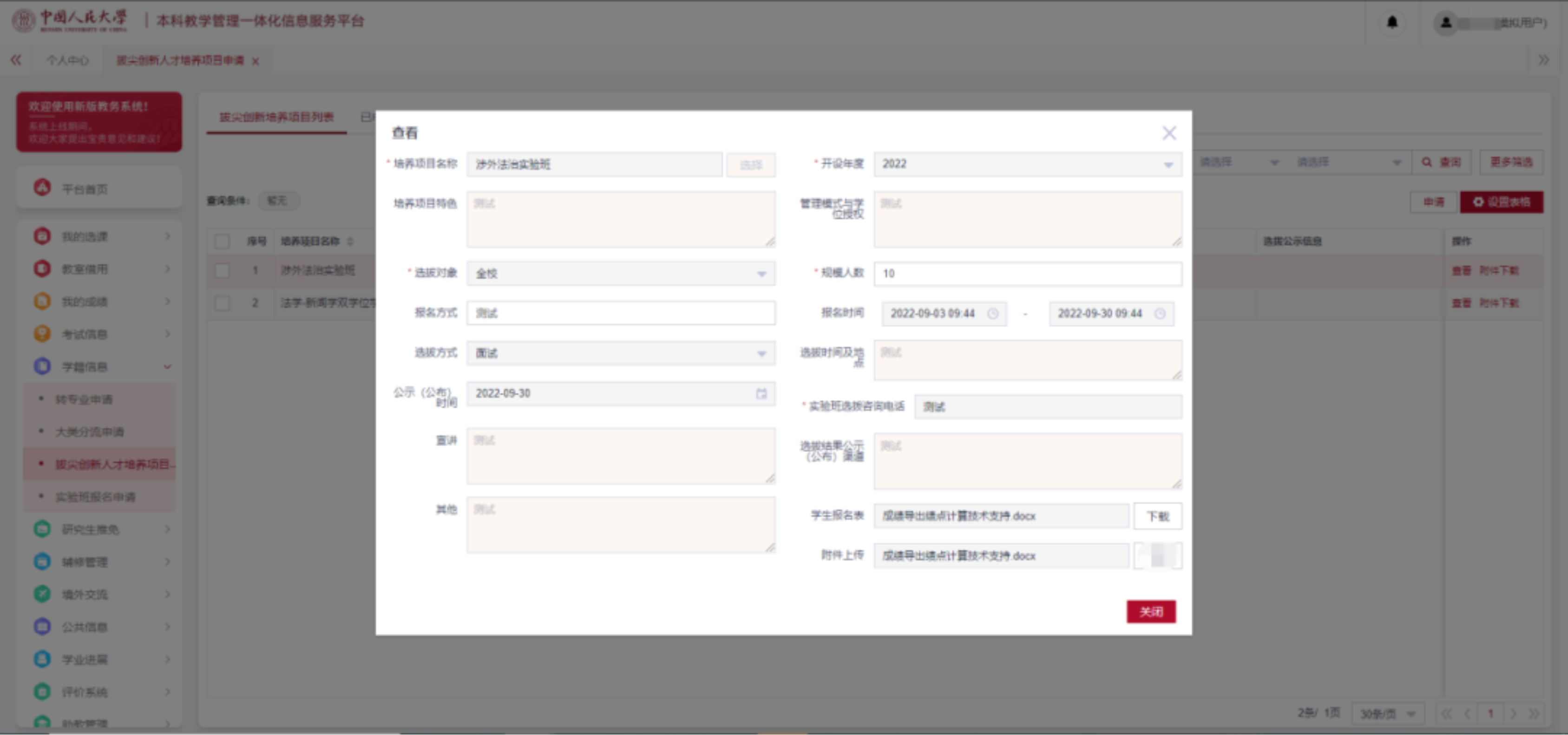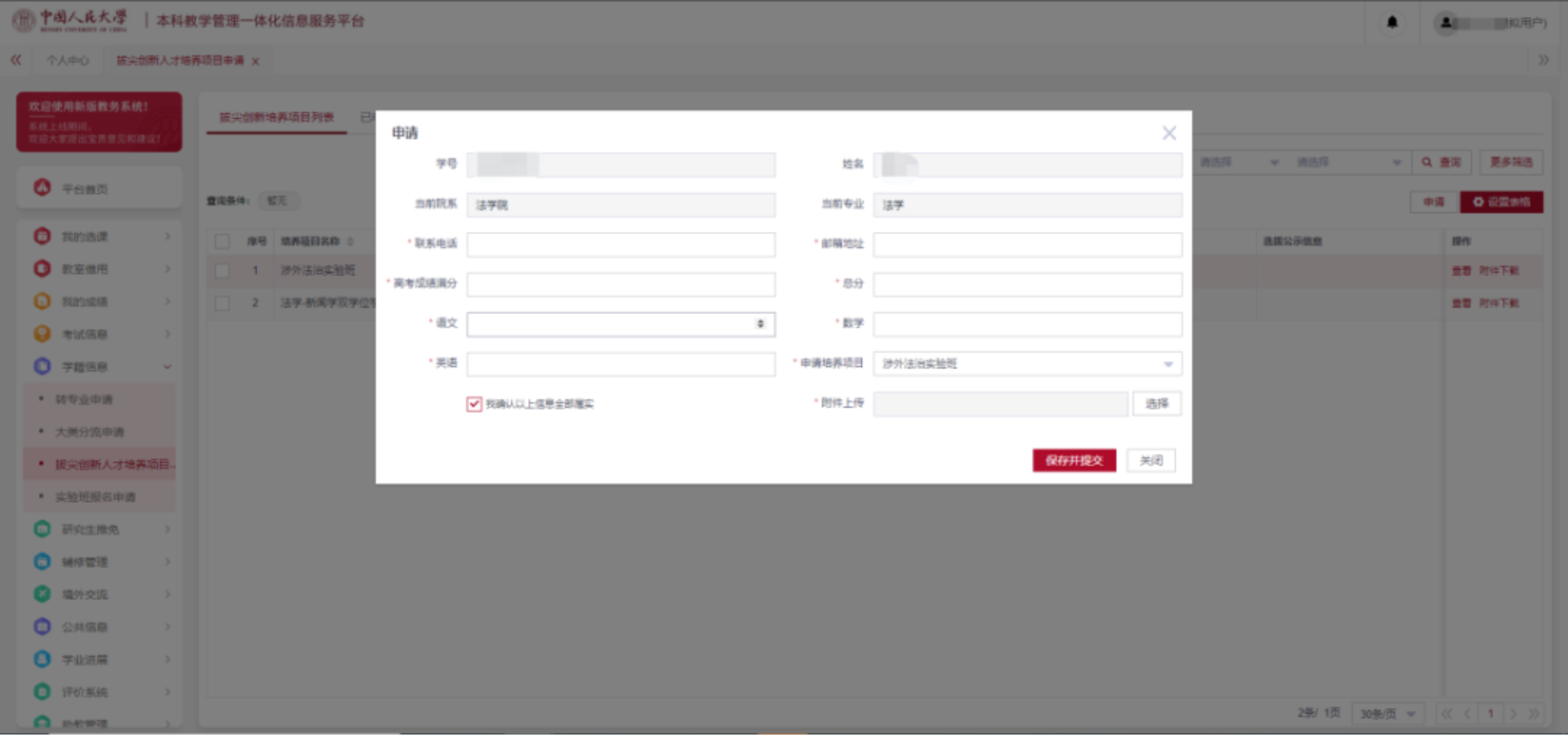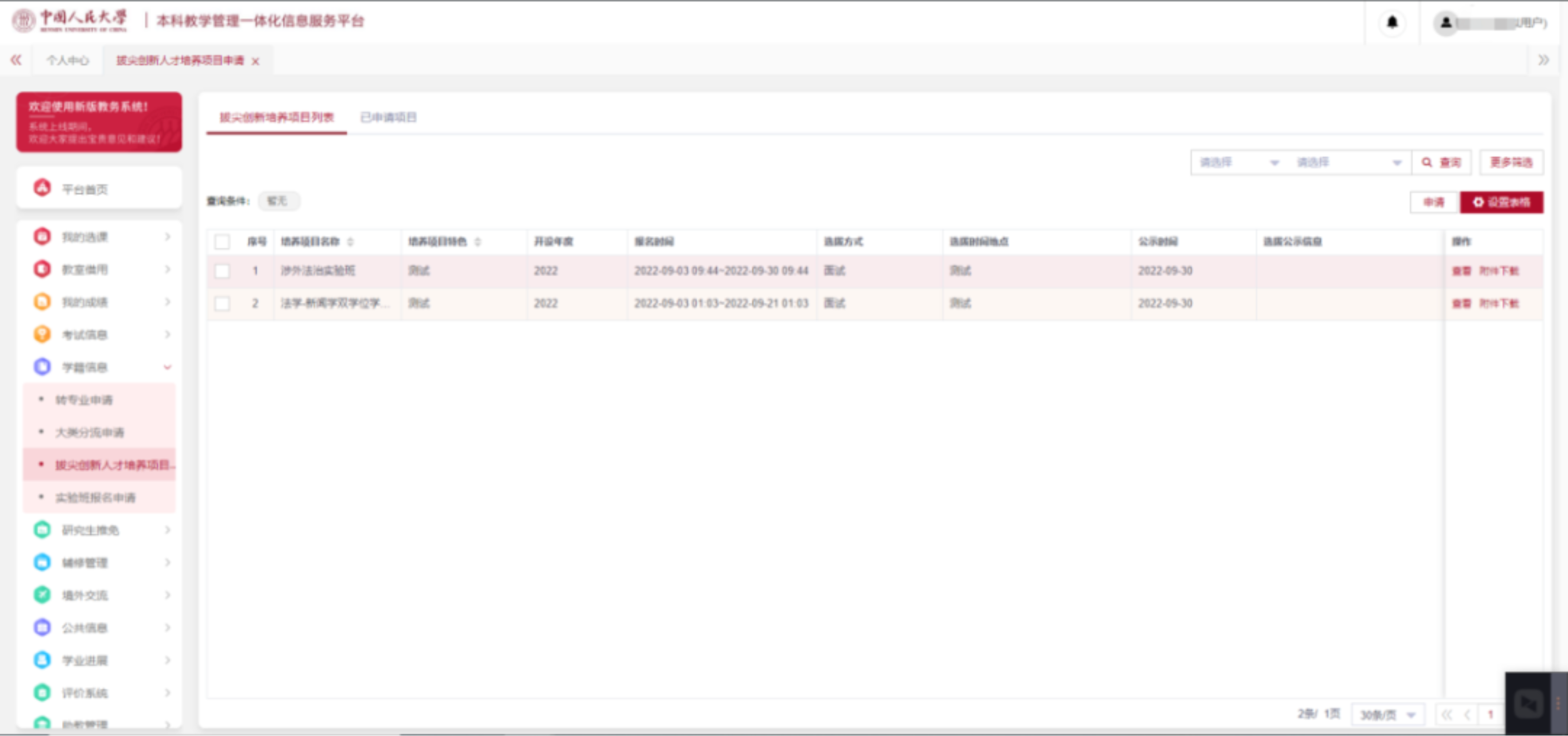 3.进入【学籍管理】-【拔尖创新人才培养项目申请】