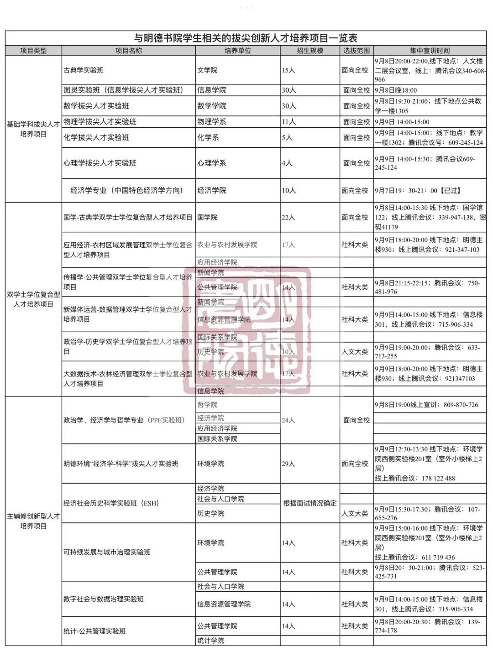 二、实验班详细信息见以下链接(各学院发布信息原文):