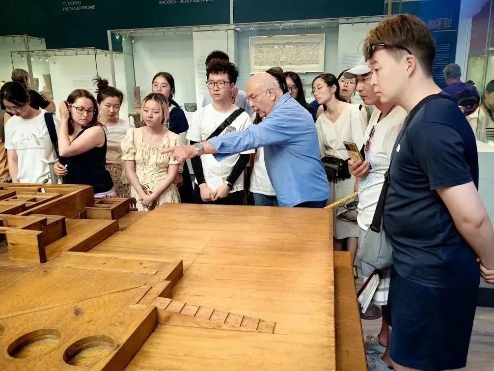 研学团师生都被形状类似子宫的瓮缸棺椁吸引,这件文物昭示了克里特人的生死观念,生由母亲子宫而来,死亦从此而去,并且要回归出生之前的身体姿态。为了使死者在地下安心,在他们棺中放有食物、盥洗用具以及泥做的妇人小像,让她能永远照顾和安慰死者。地位较尊贵的死者生前拥有的部分金银珠宝会被用来陪葬,善弈棋的人陪葬的便是一副泥棋,音乐家便会得到泥制乐器,喜爱航海的人则会获得一条小泥船。