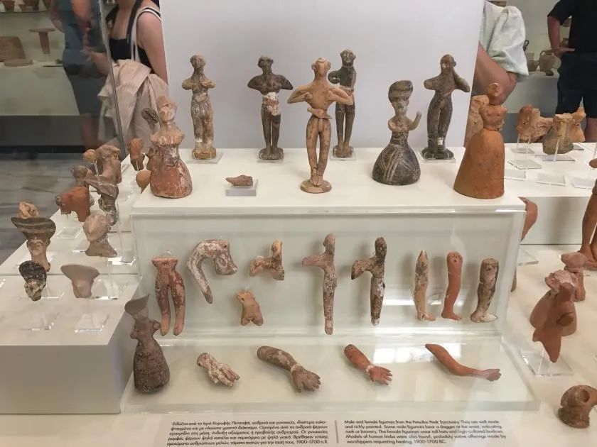 克里特人捏塑身体的不同部位(胳膊、头颈、腿脚等)作为祭品,通过这种方式告知神明捏塑者病痛所在的地方,从而祈求被治愈。也有一说,这些身体部位的泥塑不是为了让神治愈,而是痊愈后给神的谢礼。这些泥塑让同学们想到了人神感应和交感巫术的相关研究,引发了进一步思考和讨论。