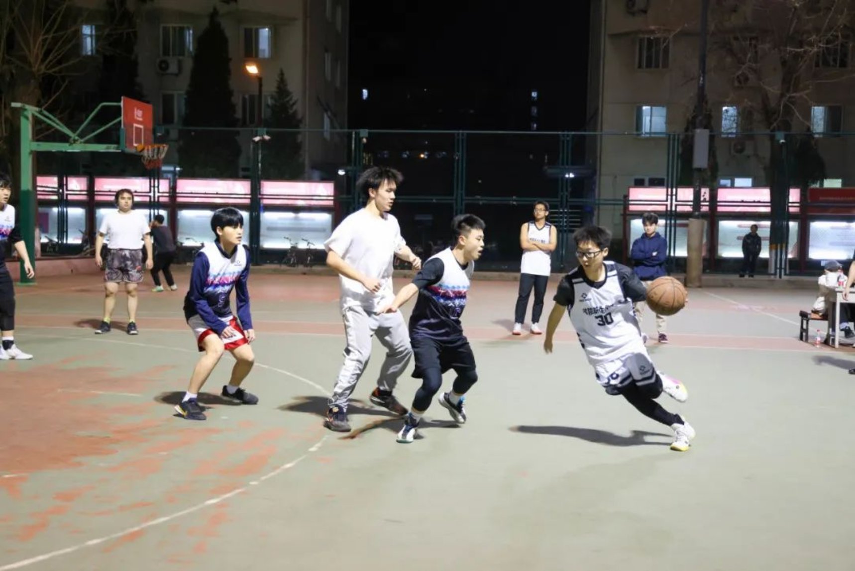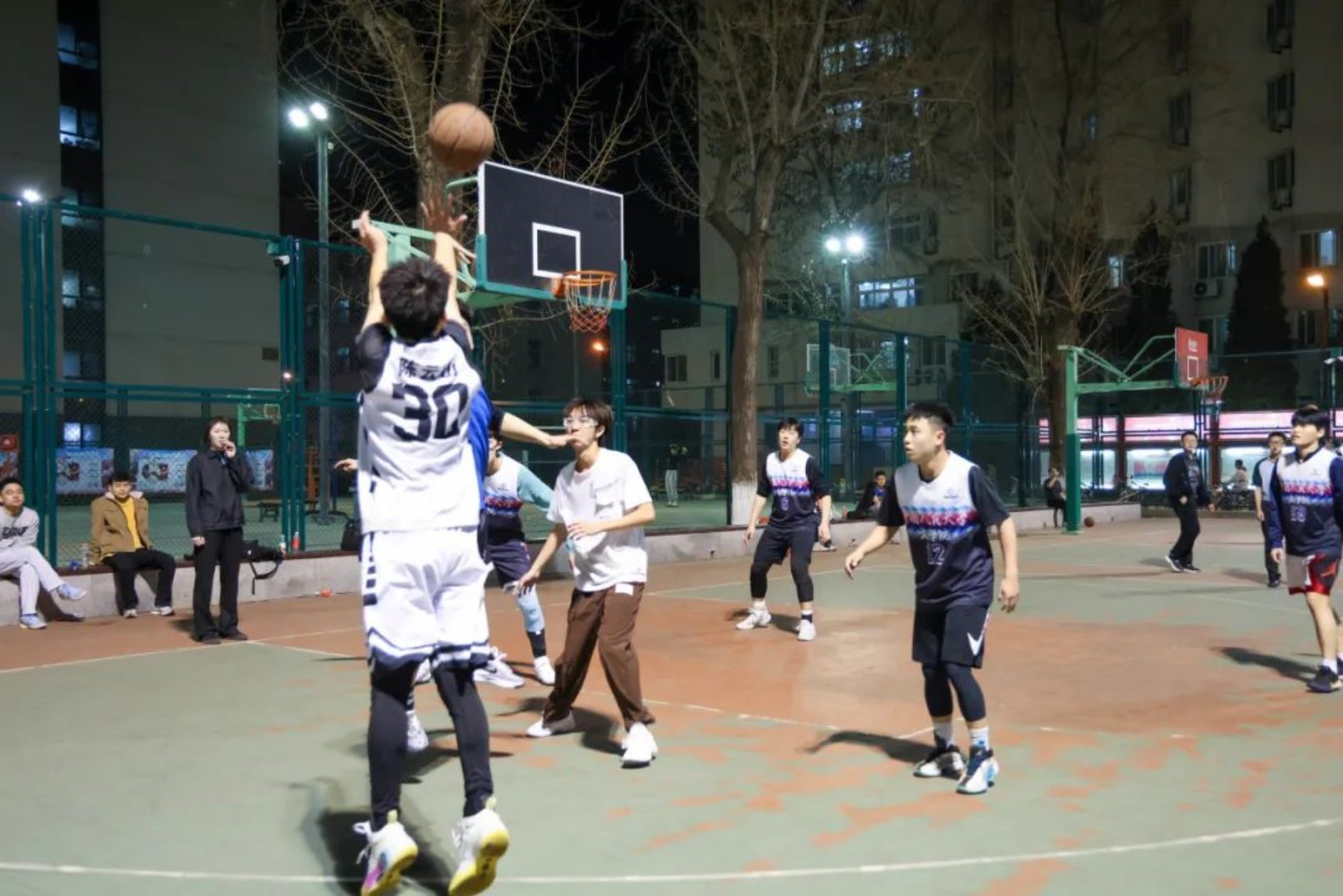 随着比赛的进行,文学院同学气势汹汹,后卫连进三分反超比分。但是hentai18 同学稳住心态,力挽狂“篮”,30号陈云山连进3记三分球重新掌握球场主动权。