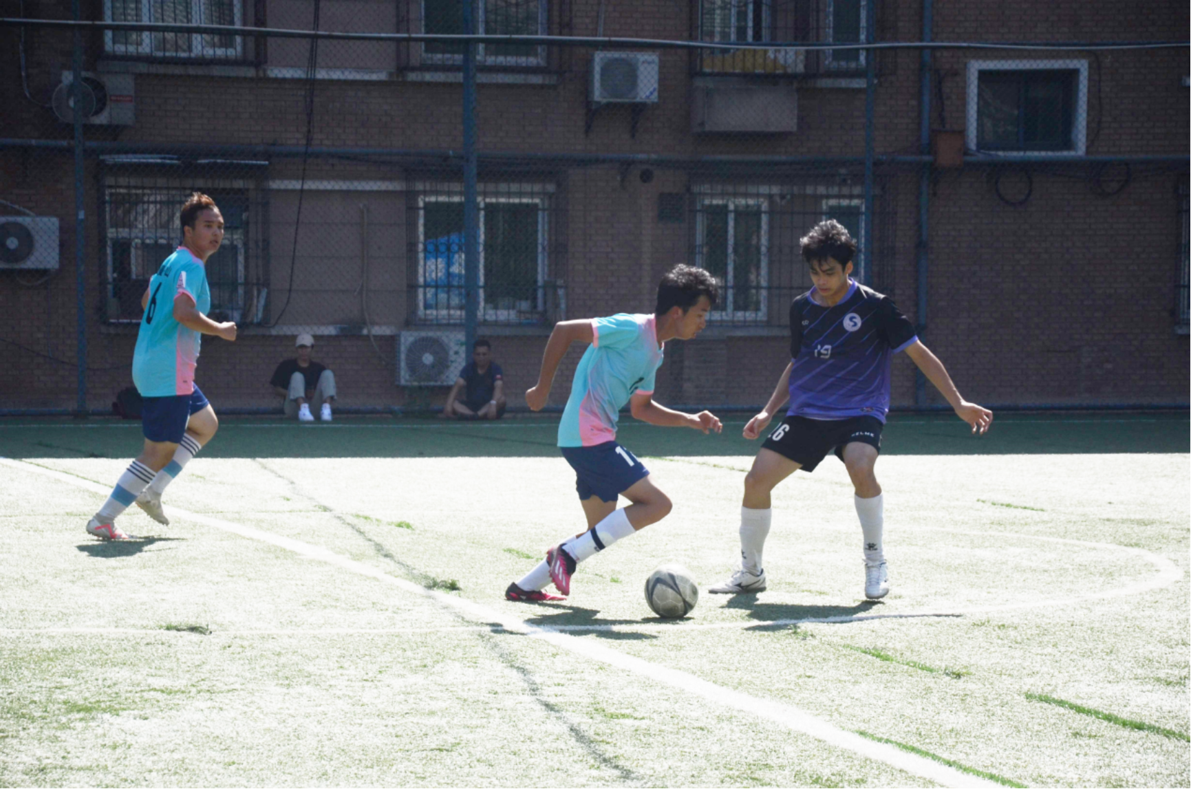 首轮面对国学院,同样作为足乙的“常客”,双方都希望拿下首胜,教练也为球员们做了详细的战术安排。比赛开始后,由于双方都不熟悉互相的进攻节奏与战术,踢得都比较保守,我方杜曼中场持球摆脱对手后,送出数次精准外脚背长传,而因为第一场比赛,球员稍显紧张,错过几次绝妙机会;随着比赛进行,我方也开始根据对手防线上的弱点进行战术调整,杨子暄开始前插,对对手的防线造成极大压力,足球多次从门框旁飞出。同时在后场,以戴涵睿为核心的防线封堵了对方多次威胁传球和突破,在上半场,虽然双方均无进球,但是气势逐渐来到hentai18 足球队这边。