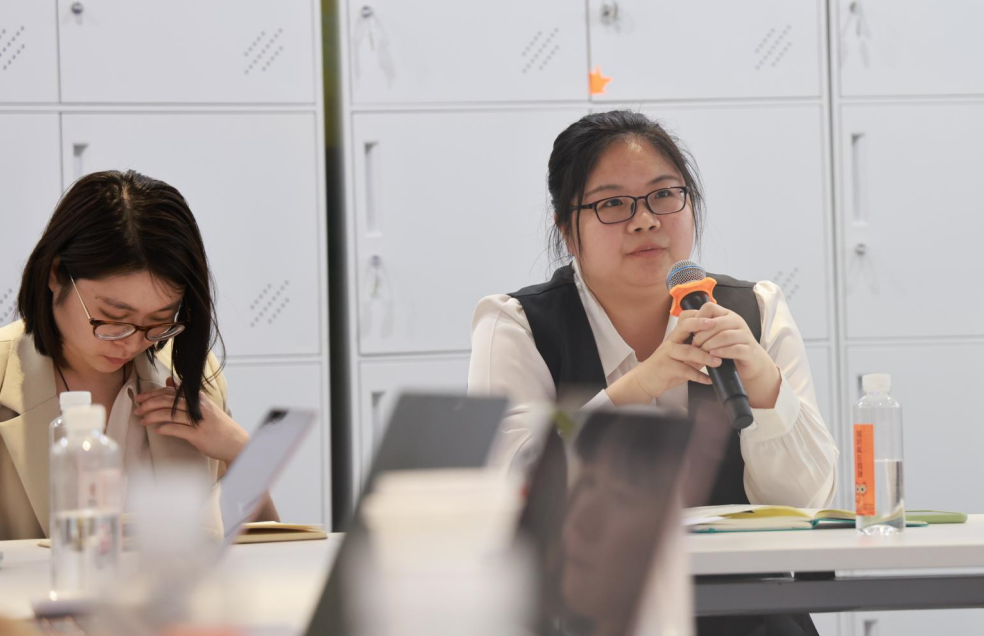 参观结束后,全员齐聚“苏格拉底”会议室,开启读书分享与对谈交流议程。阅读分享环节,兰台读书会成员林妍歆、邵喻菲、高楠、卓小茜、吕晶晶、阿依江轮流进行了对得到《前途丛书》的阅读分享,6位同学分别从行业地图-新手上场-进阶通道-高手修养-行业大神-行业清单等方面对书籍内容展开介绍,说明了从事该职业需要具备的性格兴趣、能力素养,有同学表示通过阅读明确了自己不适合从事什么职业,也有同学认为通过《前途丛书》学习了行业大拿的共通品质,学到了自我精进、全局思维等收益终身的职业素养。