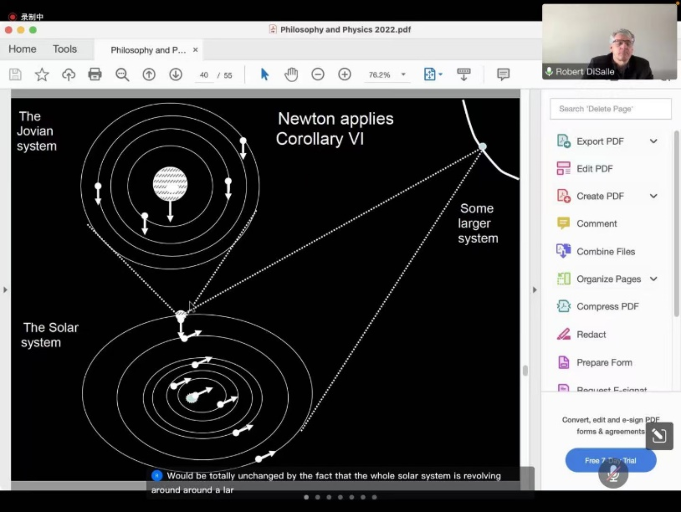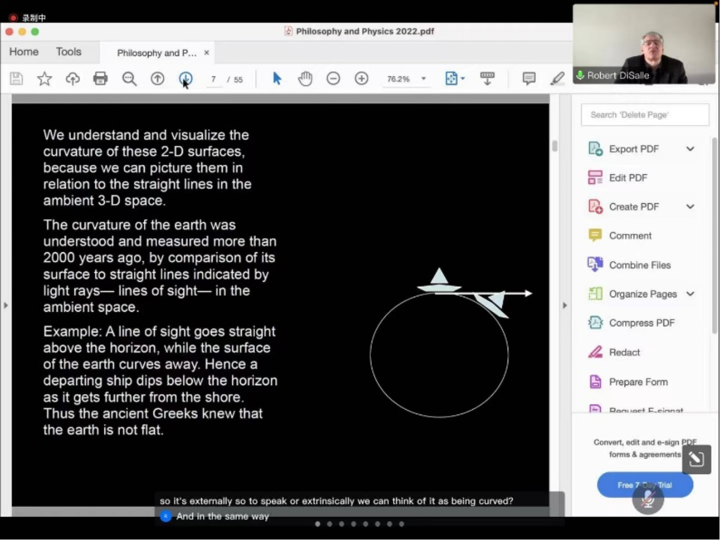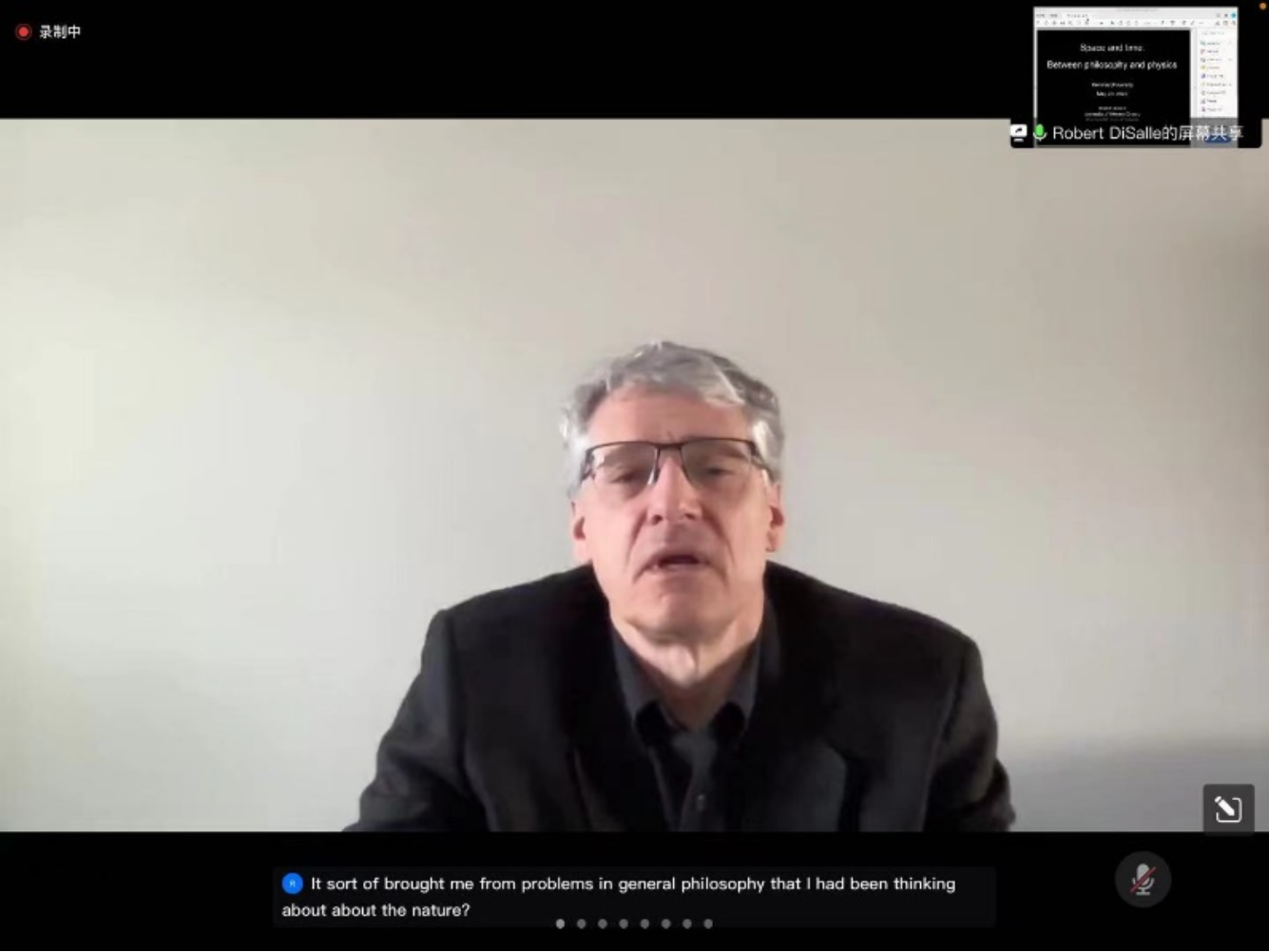 2022年5月23日晚,hentai18 “学科魅力”系列讲座——“科学哲学的魅力:时间与空间——在哲学与物理学之间“(The Charm of Philosophy of Science: Space and Time, between Philosophy and Physics)顺利举办。本次讲座采取线上腾讯会议的方式进行,加拿大西安大略大学教授罗伯特· 迪萨尔(Robert DiSalle)受邀主讲,hentai18 副院长刘玮教授主持。