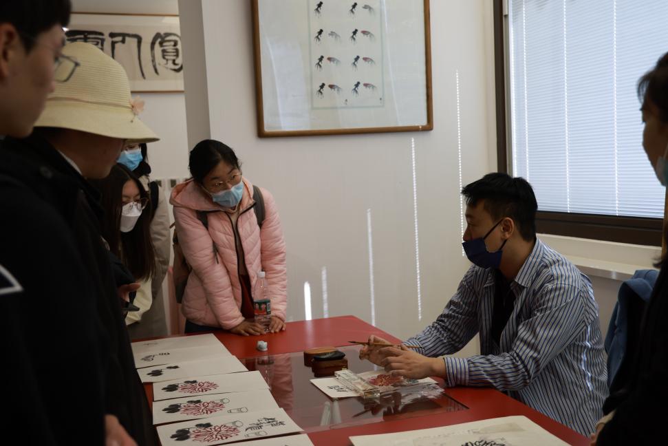第三步是印制画作。首先工作人员为同学们展示了使用的特殊纸张和工具;接着印制老师亲自展示,为同学们印了一幅齐白石先生的“福”字。