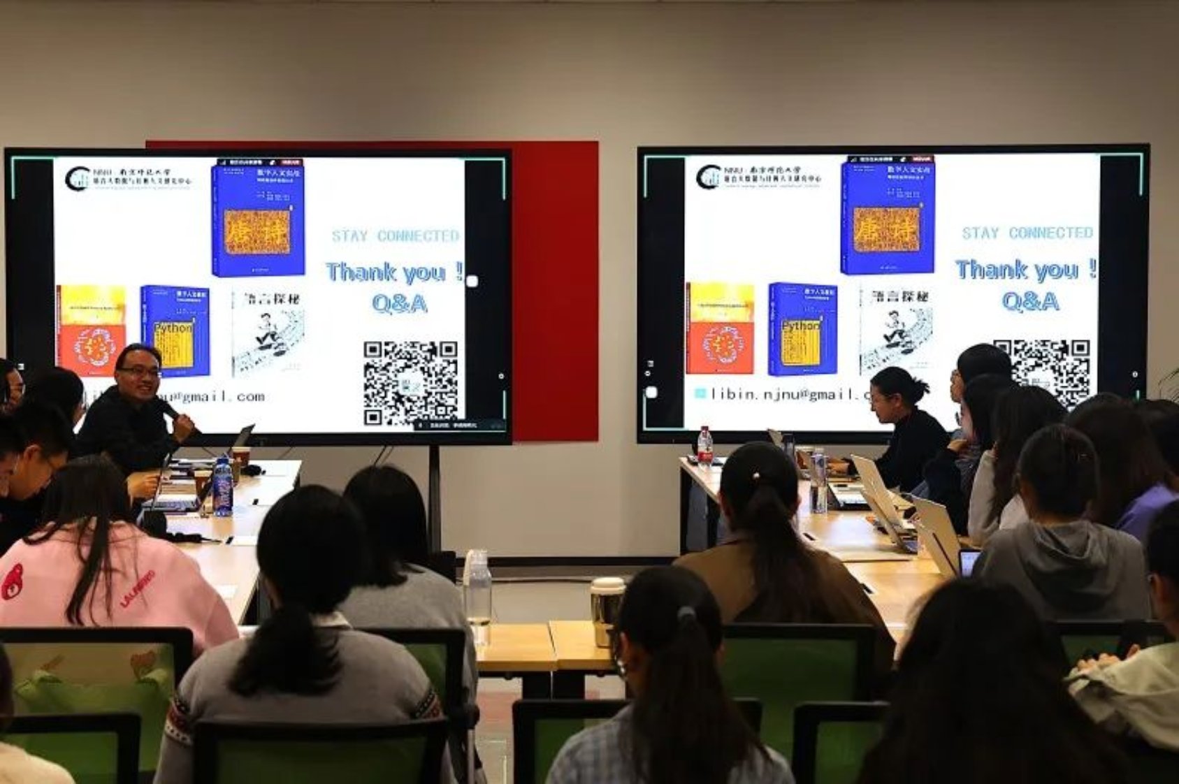 在提问环节,李斌老师主要就实际任务下分词标准的评判与选定、当下古籍知识库建设中机器参与的贡献程度、知识库建设成果如何真正满足大众需求且为大众所用等问题给予了耐心详实的解答。