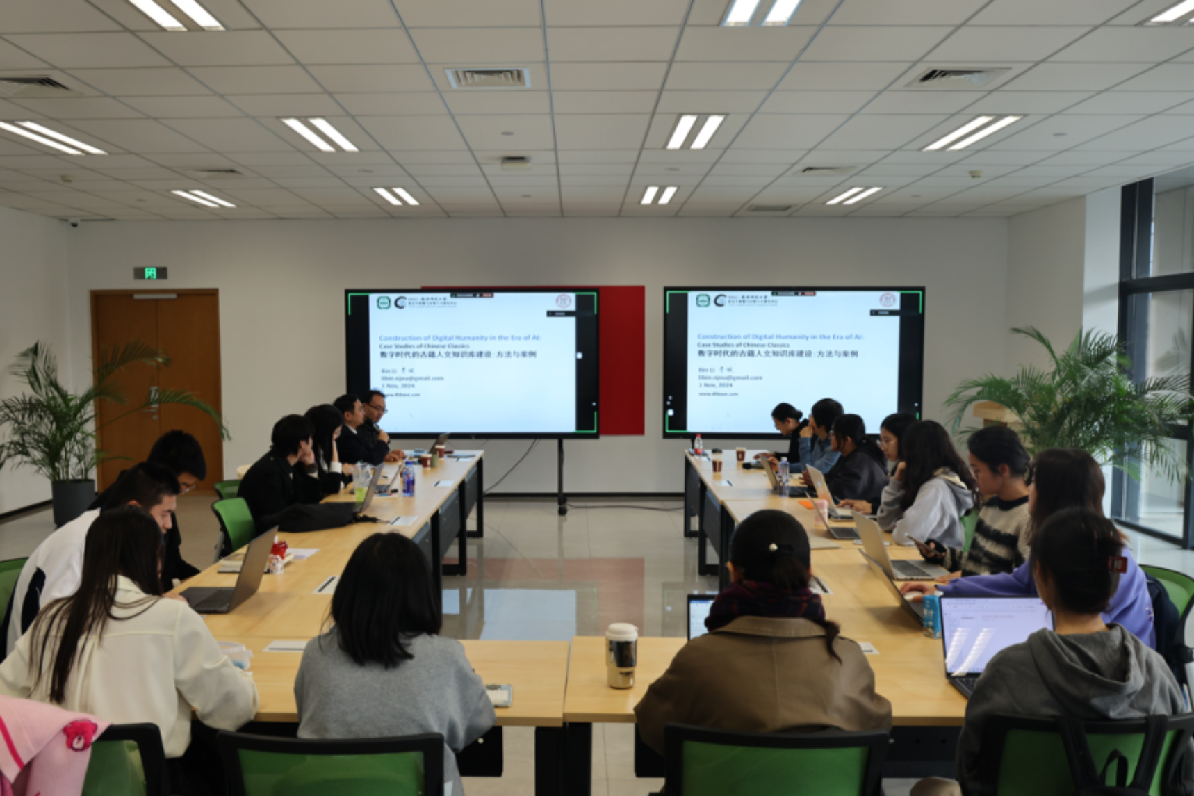 尔后,李斌老师以南京师范大学文学院在古籍数字化整理人才培养工作中曾经面临的困惑与挑战以及当前已经取得的成果为例,简单分享了自己在此方面的经验心得。针对前者,李老师主要讨论了交叉学科背景下学生课程的设置安排、面向专家的检索平台与学生使用需求的不适配等突出问题。针对后者,李老师则以近三年来由南师大等高校组织筹办的EvaHan等国际测评竞赛结果为例,展现了当前国内古籍数字化人才培养的初步成效。。鉴于欧美国家在古籍知识库建设方面的研究起步较早,李斌老师援引了包括ctext、Digital Atlas of Roman and Medieval Civilizations、CBDB等在内的若干具有代表性的国外古籍知识库成果,带领同学们探讨其中可供学习参考的经验。