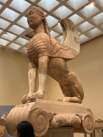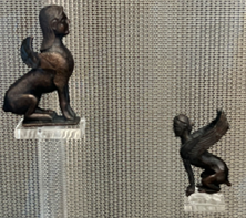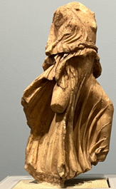 出土文物中还广泛存在着一些赤陶烧制的女性雕像,与同时期的青铜或象牙雕塑表现出不同的风格。它们高10厘米左右,有一个圆柱形的底座,身体呈圆柱形或半月形,胸部由两颗灰泥颗粒表现出来。它们全身涂着红色或黑色的花纹作为衣服,其上安着一个倒三角形的脑袋,眼睛、鼻子等。考古学家Arne Furumark根据雕像表现出的姿态将其分类:双臂高举的由于形似希腊字母Ψ,因此被称作“Psi型”;双臂垂于身前的因其与字母Φ的相似性而被称作“Phi型”,此外还有一种双臂交叉于胸前的,与字母Τ形似,被称作“Tau型”。有学者因其体现出的女性生育特征,认为它们代表着强大的女神,或者神的照料者;也有人因其亦曾出土于神殿遗址,认为它们被崇拜者用于祭祀活动,是还愿的敬献品;另有人因其也在房屋中出现,且它们的外观与孩童的葬礼存在对应关系,于是将它们看作儿童玩具。马丁·贝尔纳结合近东地区考古成果,认为这些小雕像或许兼具以上三种功能,而它们的产生受到了埃及的一种人形小雕像“沙伯替”(Shuabtis)的影响,沙伯替在埃及是与死者一起埋葬的人佣,在亡灵世界中担任死者的仆人与保护者。