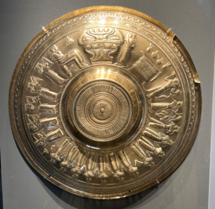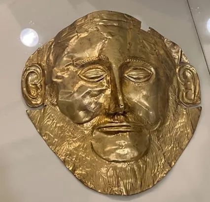 迈锡尼的墓葬坑中,出土了许多饰有金银和象牙的青铜佩剑,或许那些战士们希望,即使在哈得斯的冥府,也能展现自己的力量,获取威名。此外,还有许多珠宝与金器、金首饰,它们刻着狩猎与战斗的纹样,发出熠熠光芒。著名的“阿伽门农的黄金面具”即出土于此,它由纯金打造,表面上清晰地印出一张成年男性的面容,须髭、眉毛清晰可见,更显尊者威严。学者们认为,工匠们是先将极薄的金片贴在死者的脸上,然后用木棍快速击打而使金片定形,造就了这番栩栩如生的工艺。