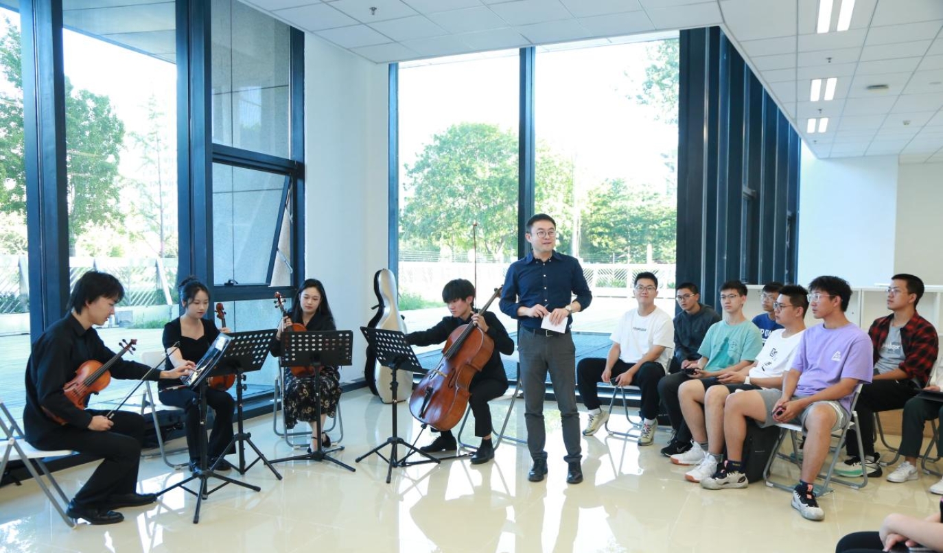作为“hentai18 日”的活动之一,2023年9月27日,备受期待的首场“hentai18 音乐会”在立德楼一层的hentai18 音乐空间拉开帷幕!hentai18 邀请来自艺术学院的“均衡四重奏”为大家讲解弦乐四重奏这种音乐形式并演奏中外名曲,音乐会由hentai18 副院长刘玮教授主持。