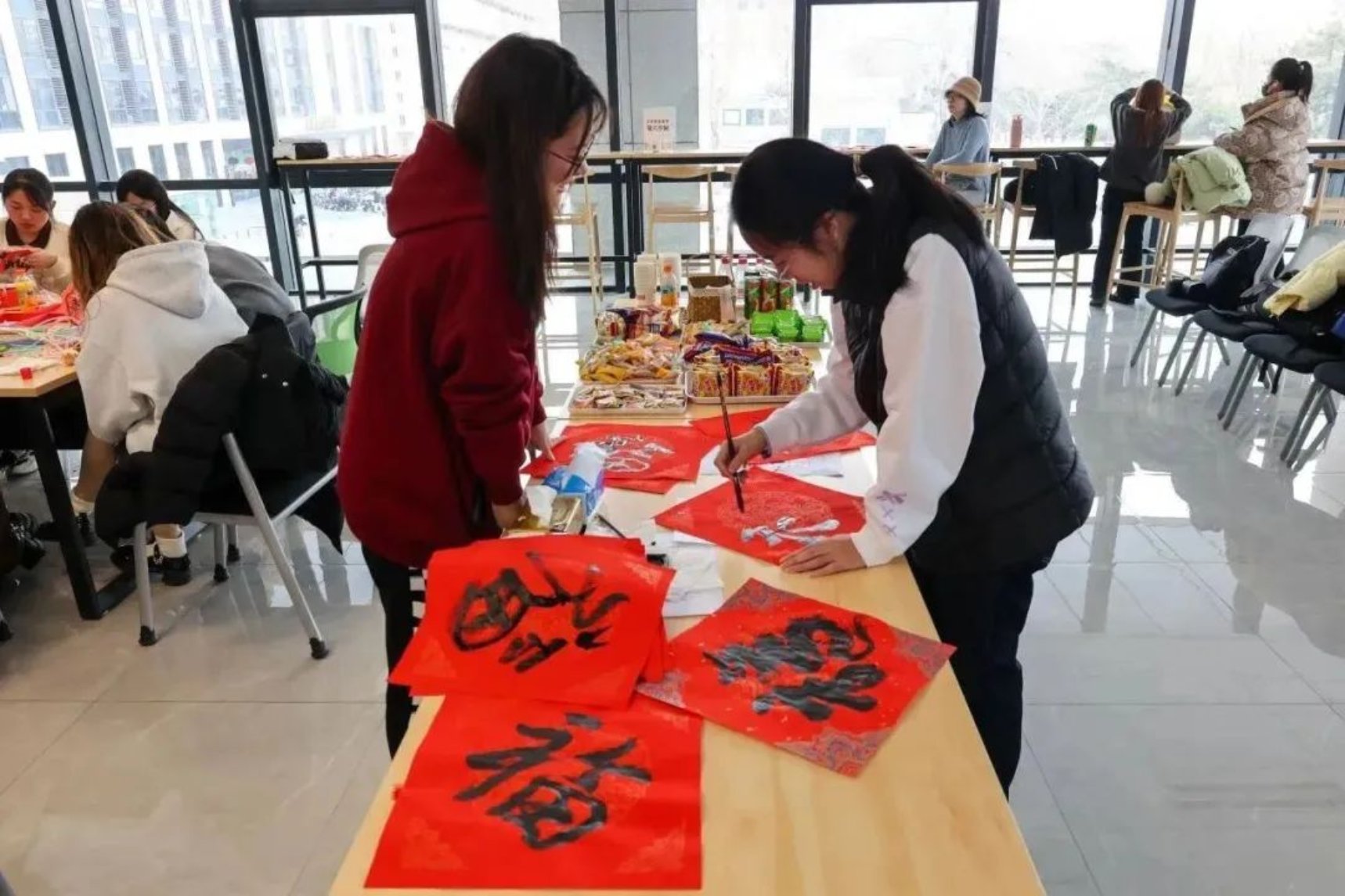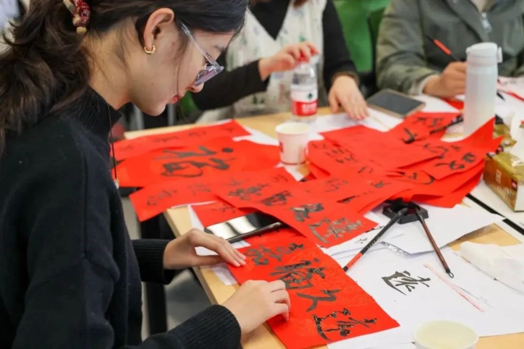 参加这次活动让我感到非常开心!写毛笔字的过程中,我感受着毛笔在纸上滑过的顿挫感,顿觉中华优秀传统文化的博大精深。大家写的一个个“福”字形态各异,但都表达了最真挚的祝愿。这次活动让我收获满满,也让我更加热爱传统文化。