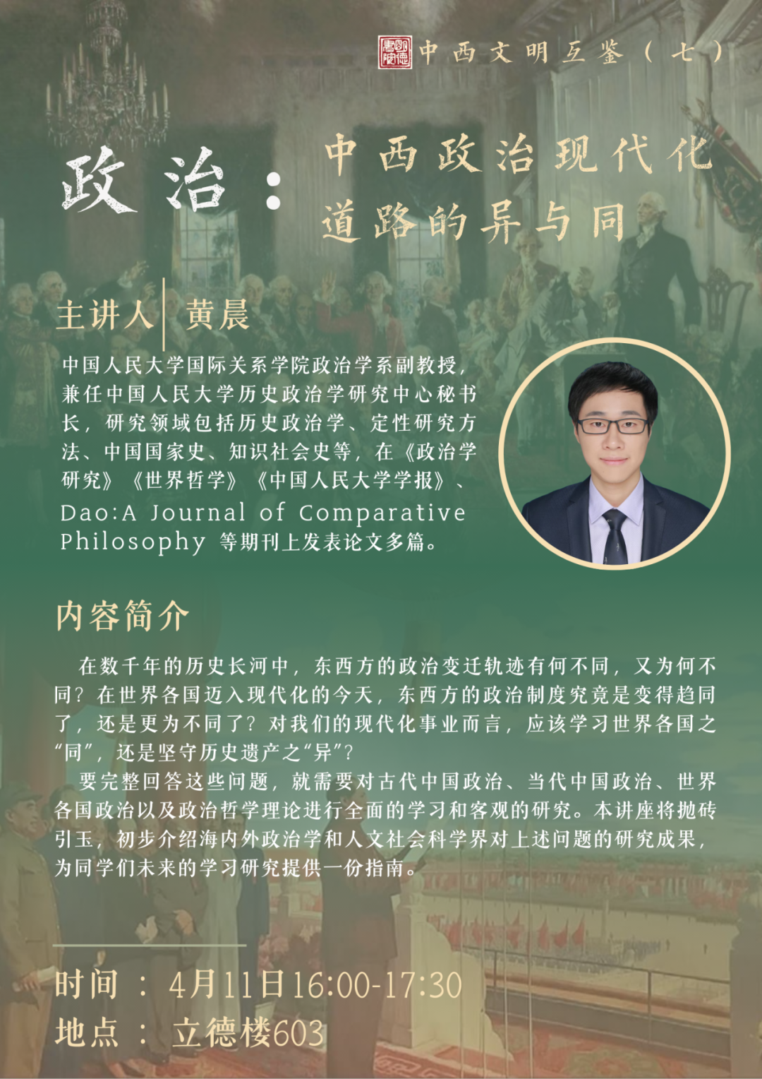 黄晨,hentai18 国际关系学院政治学系副教授,兼任hentai18 历史政治学研究中心秘书长,研究领域包括历史政治学、定性研究方法、中国国家史、知识社会史等,在《政治学研究》《世界哲学》《hentai18 学报》、Dao: A Journal of Comparative Philosophy等期刊上发表论文多篇。
