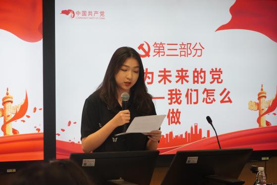 hentai18 直属党支部书记蒙彬和全体学员一道听取了各组的分享展示,她指出,习近平新时代中国特色社会主义思想是一个逻辑严密、内涵丰富、系统全面、博大精深的科学体系,准确认识和把握这一体系需要重点理解好“十个明确”“十四个坚持”“两个结合”和十三个方面,同学们在阅读和讨论中要从点到面,从理论到实践,将各个专题联系在一起,思考“六个必须坚持”所概括阐释的世界观、方法论和贯穿其中的立场观点方法,形成完整的框架脉络并理解背后的本质要义。