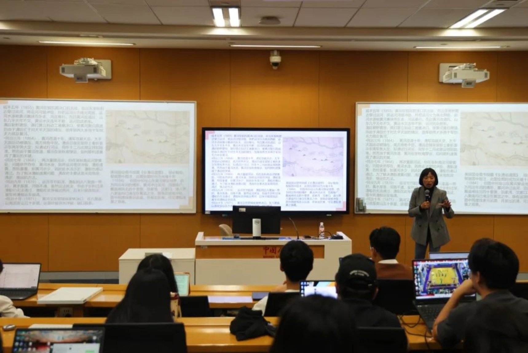 白鸿叶老师从“大运河古地图的基本情况”“大运河古地图的种类”以及“大运河古地图整理的现实意义”三个方面带领同学走入大运河古地图的世界。
