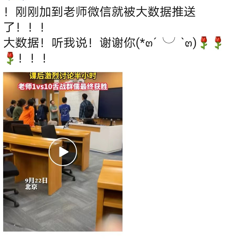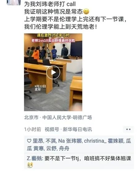 9月23日,一则视频在媒体上意外走红:一位教师1v10,与学生在课后就课堂内容论争半个多小时。视频的主角不是别人,正是hentai18 主管教学的副院长刘玮教授。身为哲学院教师,刘玮教授为同学们熟知的是,不管是在本科的课堂上还是研究生的课堂上,他都喜欢“拖堂”,他喜欢和同学们展开热烈的讨论,只要同学们愿意听、愿意讨论、不嫌烦,他就一定“给足”“管够”,上课时间不够下课继续,下课不够就约时间继续。