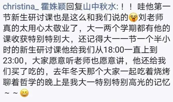 “严谨、深刻、激情”,“风趣、幽默、亲和,在刘玮老师身上形成了统一”,同学们的朋友圈中这样评价道。