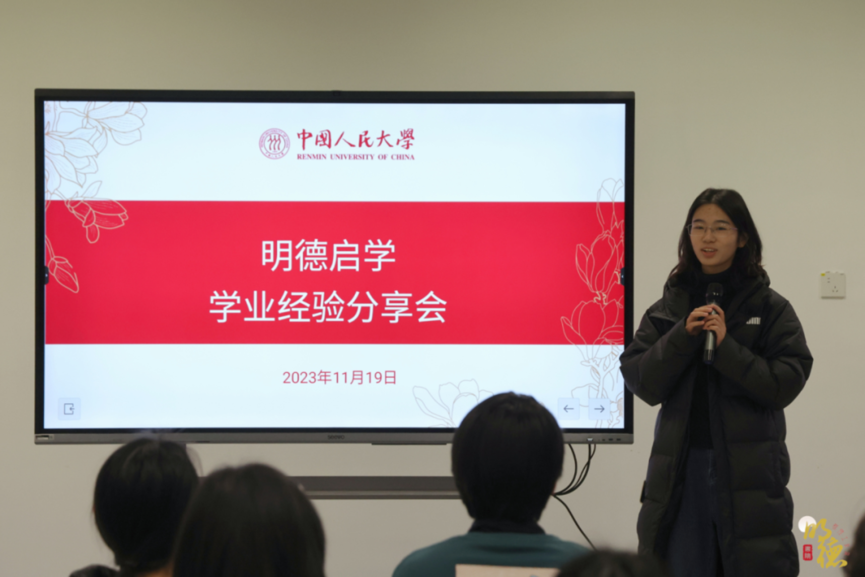 环境学院2022级本科生雷曜瑜就大学公共课的学习进行分享。她指出,按时出勤、认真对待教材和作业是扫除知识盲区的前提和基础。对于时间分配,她认为“功夫在平时”,要利用好大块时间,去集中解决数学难题或者专心阅读专业书籍,针对事情的轻重缓急给自己设置不同的“ddl”。最后关于期中考试,她从心态和方法两个层面提出建议,一是要认真学习别人的优点,享受学习的过程而非预设结果;二是要走出功利与急躁,关注各课程的评分规则、教学大纲等信息。