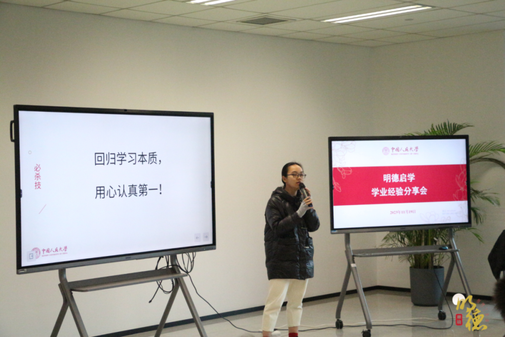 2022级法学院本科生梁恒子主要就转专业问题进行答疑解惑。她从转专业考试的资料收集和转专业后的课程学习两个方面进行了介绍。她谈到,转专业后不可避免地会面临来自学业、人际交往等多方面的压力,因此一定要在了解各类信息的基础上慎重做出决定。