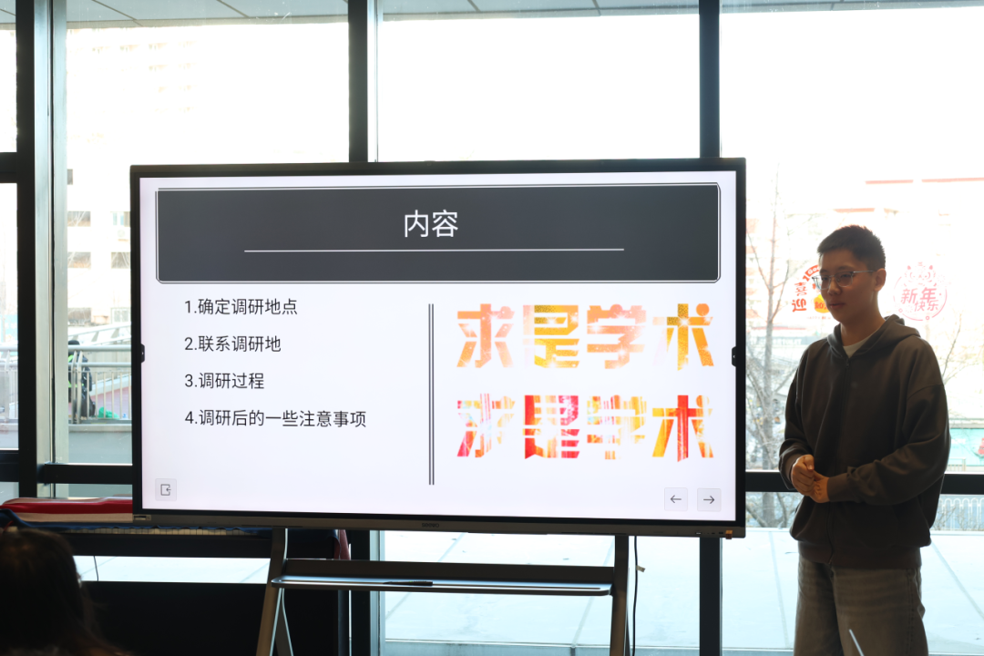 法学院2022级本科生张在睿围绕实地调研展开分享,分别从确定调研地点、联系调研地、调研实施过程与调研结果总结几个方面介绍了注意事项与心得体会,指出要选取典型案例、积极耐心沟通、明确调研任务、遵守调研地相关规则并及时整理访谈稿和问卷数据,做好调研转化。