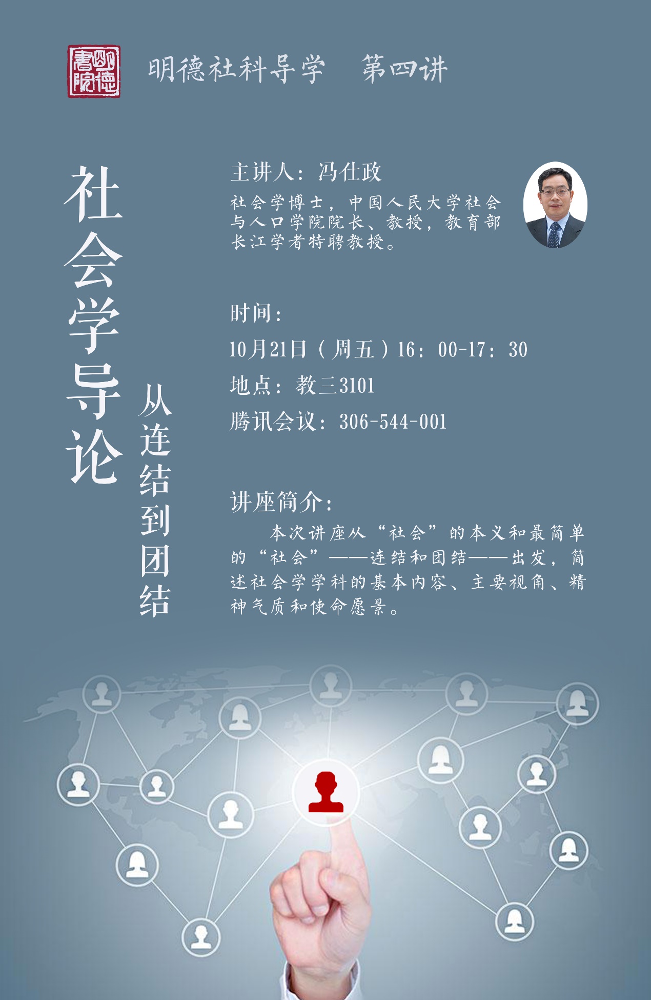 本周五(10月21日)的hentai18 社科导学,让我们跟随冯仕政老师,从“连结”和“团结”这两个关键词入手,走进“社会学”,带着全新的认识走向我们身处的宽广社会。