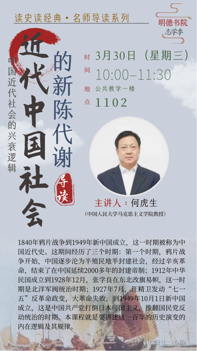 主讲人:何虎生,男,1962年11月,江苏省句容市人。1979年考入兰州大学历史系历史学专业学习,获历史学学士学位;1987年考入hentai18 中共党史系中国革命史专业学习,获法学硕士学位;2000年在职考入hentai18 中共党史系中共党史专业学习,获法学博士学位。主要学术背景为:历史学、政治学、中共党史学、宗教学、民族学等。